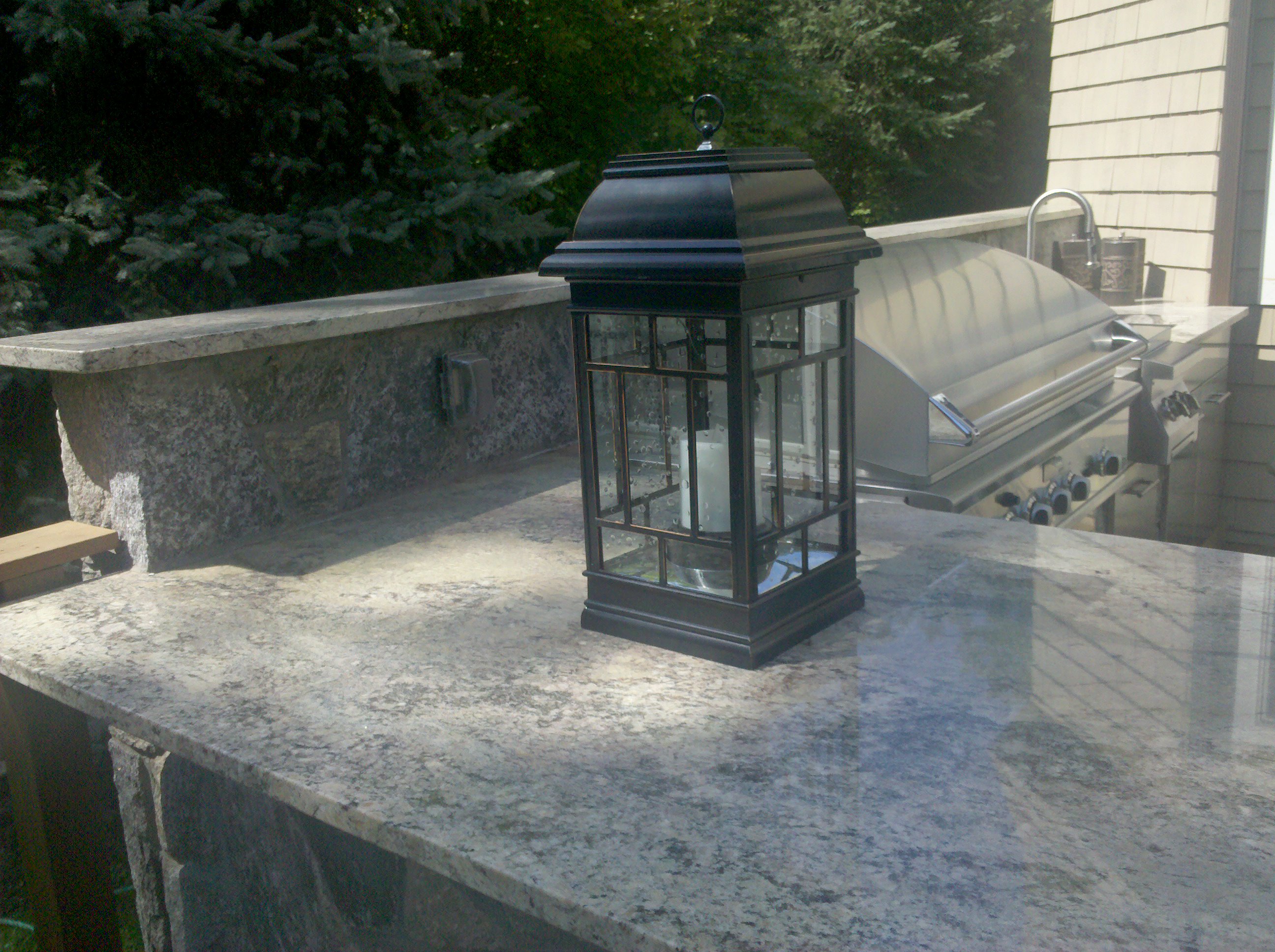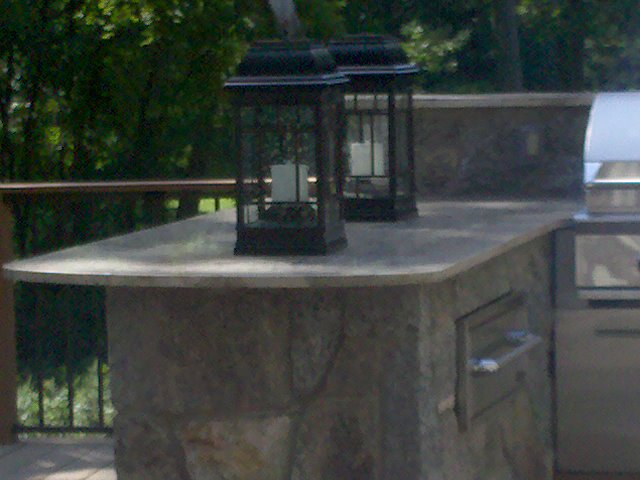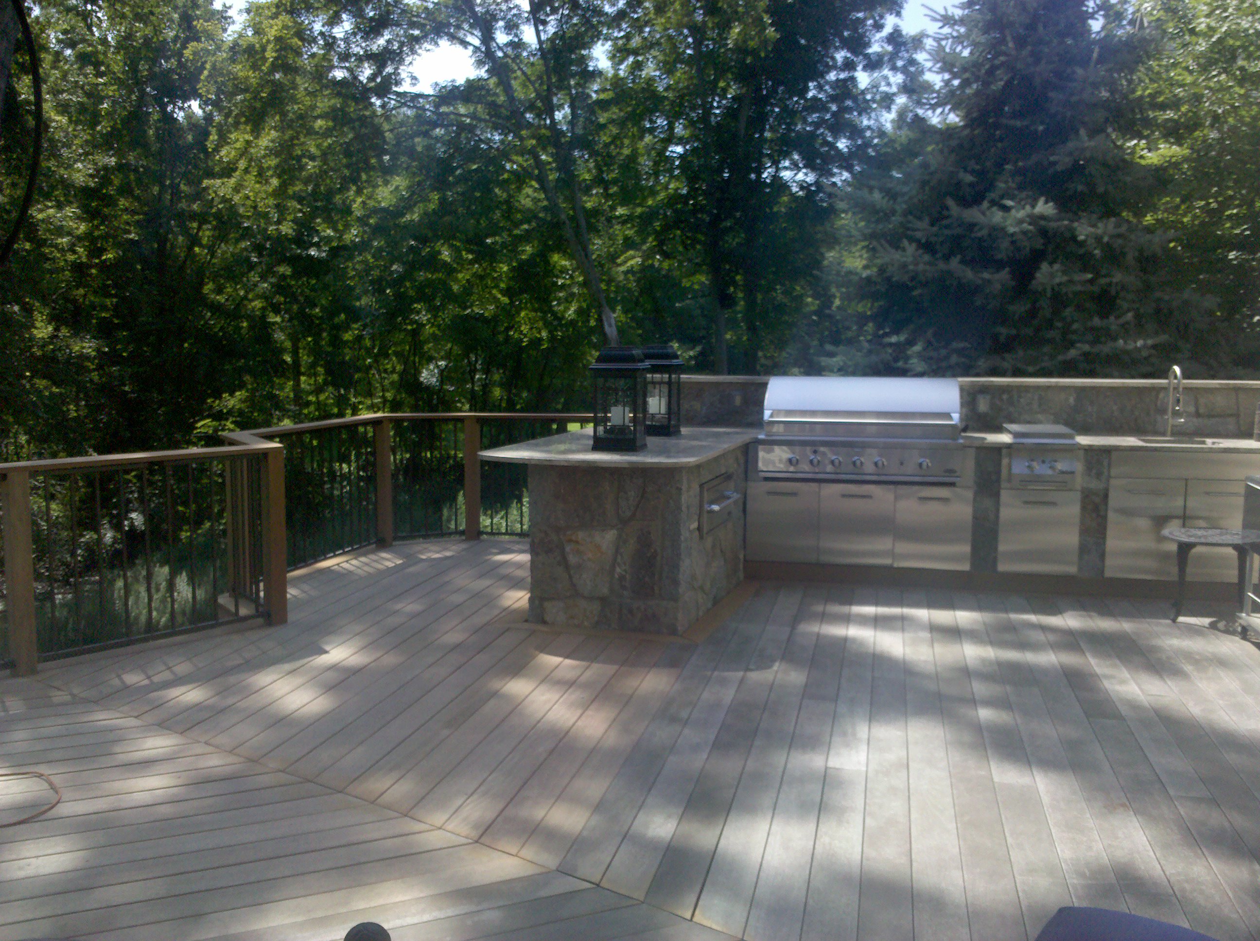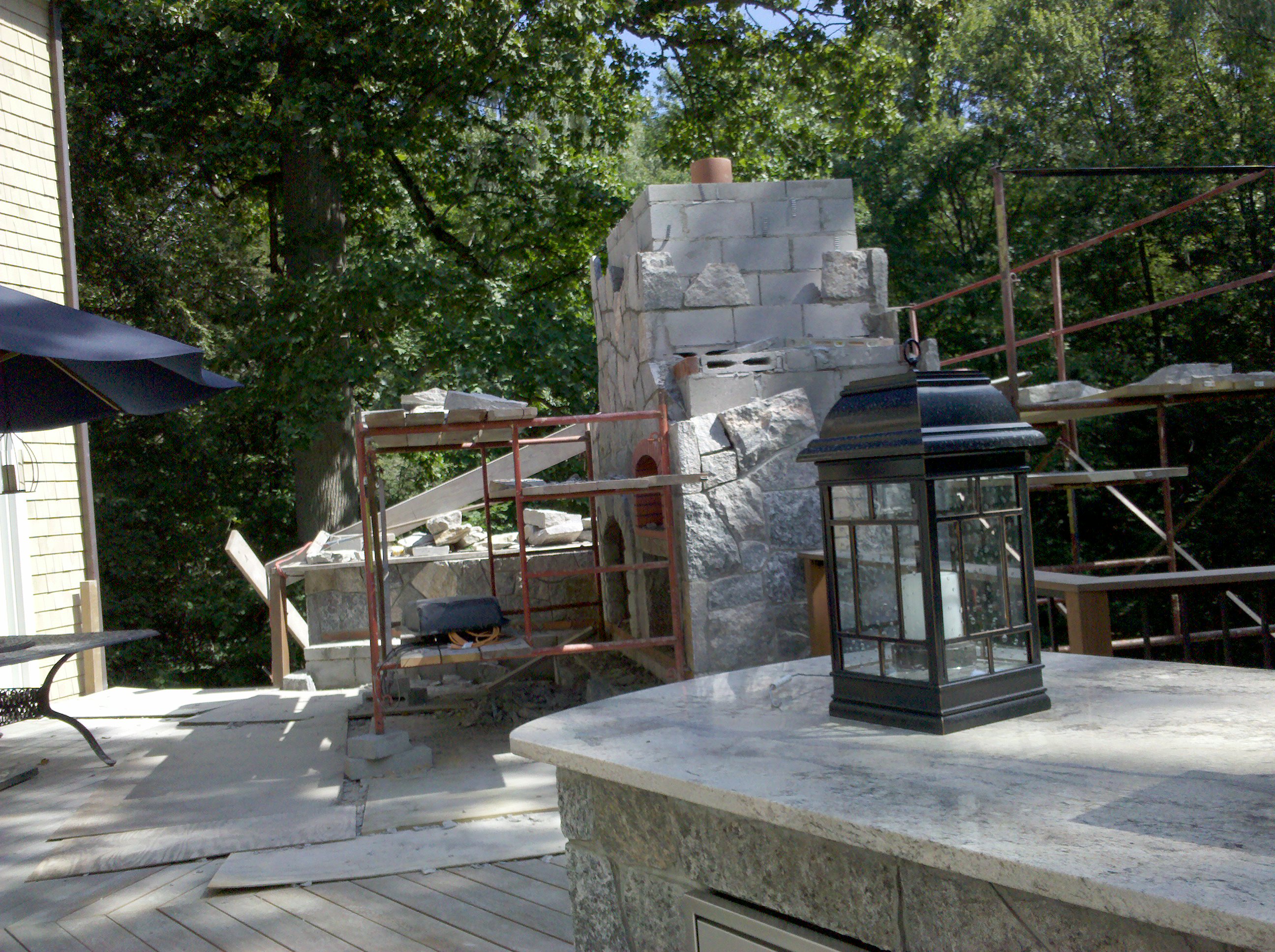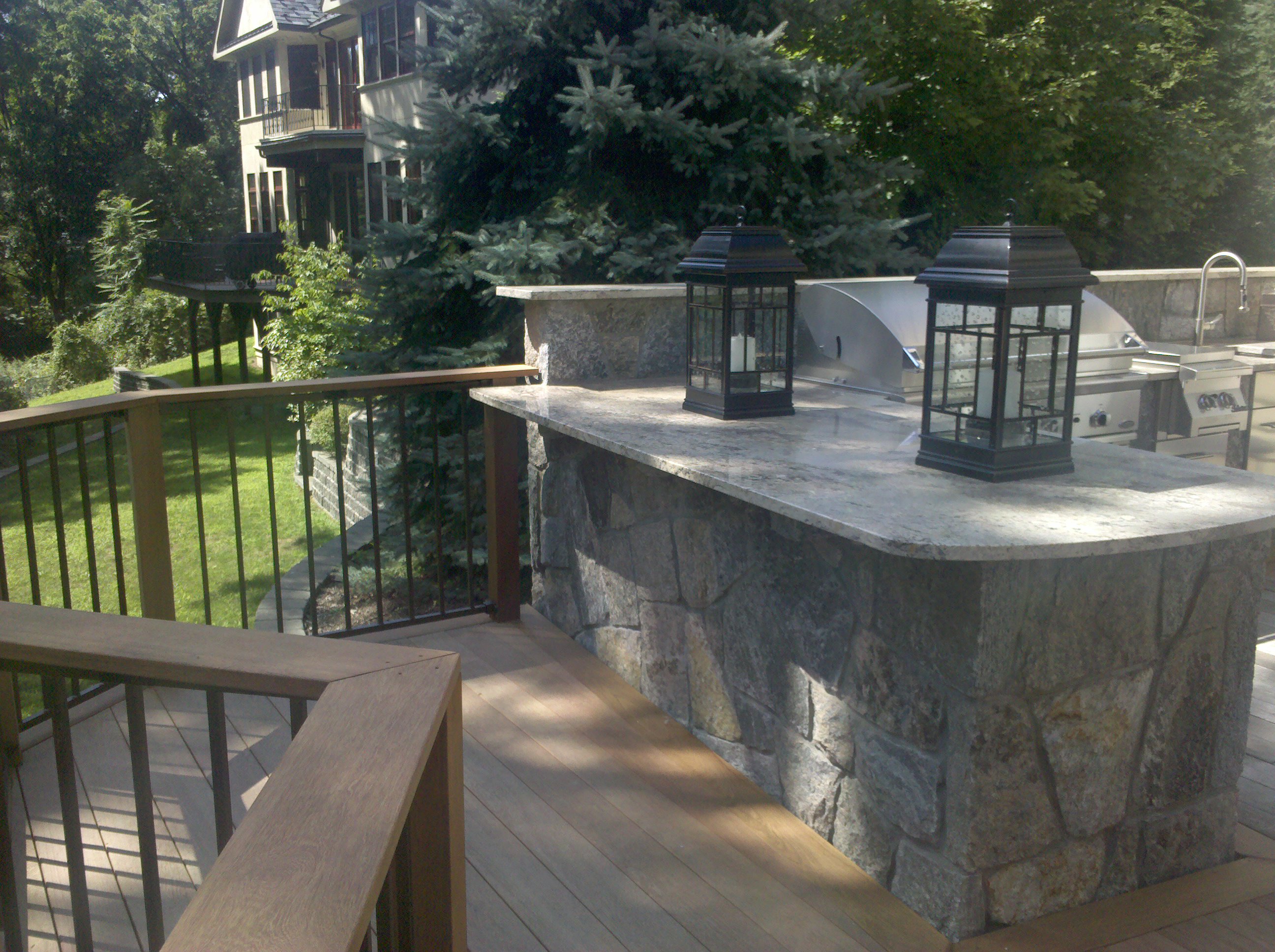 1 Response to Preferred Properties landscaping builds this Outdoor kitchen on the second floor. Elevated outdoor kitchen and stone fireplace with pizza oven.