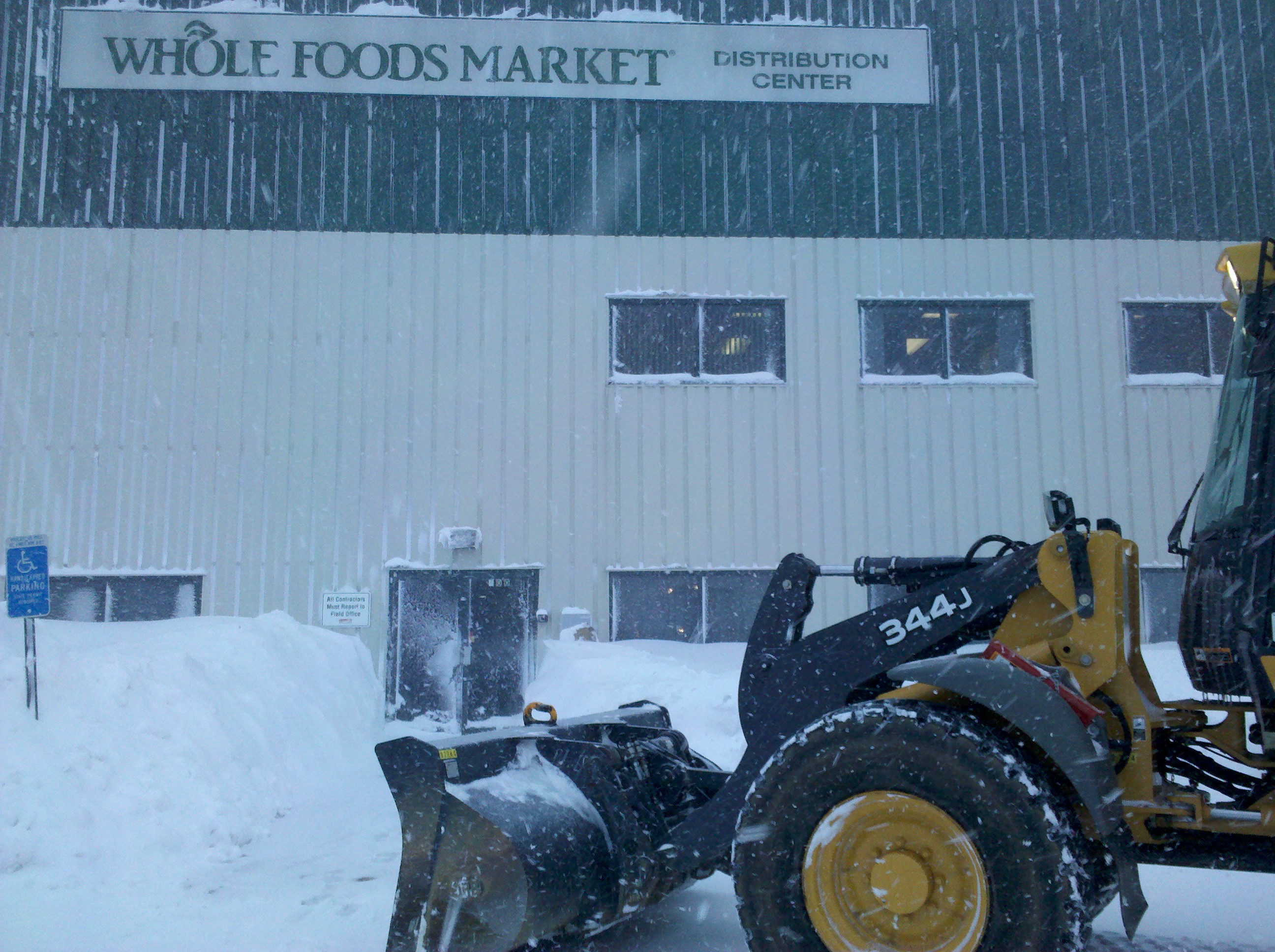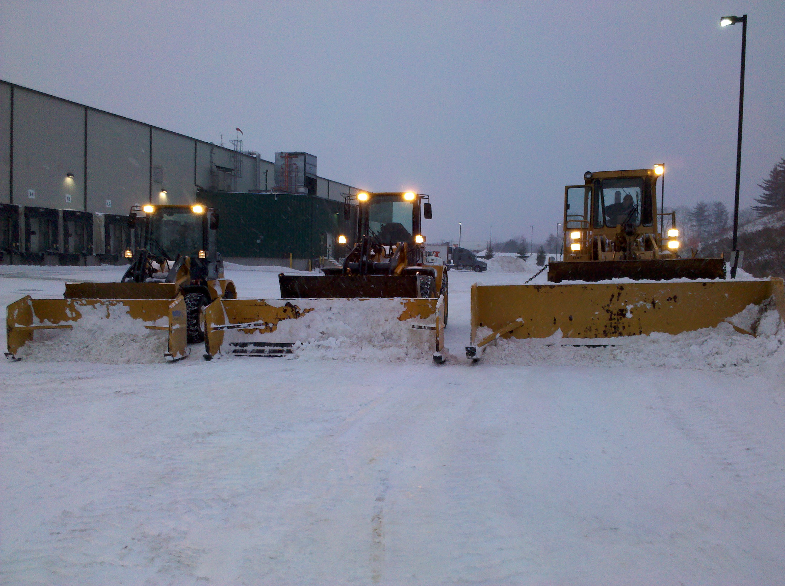 Preferred Properties landscaping has over 26 years of experience in snow removal and ice magement. A proactive approach and a Sound snow response plan are the prerequisites for a successful storm clearing attempt. Plowing throughout the storm helps position yourself in the midst of NEW ENGLAND’S WINTER WRATH. UNDERSTANDING THE SCOPE of operations and a clear understanding of the business operations of the lot owner helps formulate the snow response plan to precisely know Your snow removal capacity. In This particular business scenario We are realized to plow throughout the storm and to provide safe transit and truck loading possibilities at all times. Choosing the right snow removal and snow loading equipment is essential to the timeliness and cleanliness of the snow removal procedure. Various selected loaders with snow pushers are the secret ingredients for this snow removal remedy. The smaller and mid sized loaders allow snow clearing underneath the tractor trailers allowing for ease of hookup by the yard dog. Preferred Properties Landscaping is proud and prepared to be part of the snow response plan with WHOLE FOODS distribution outlet .