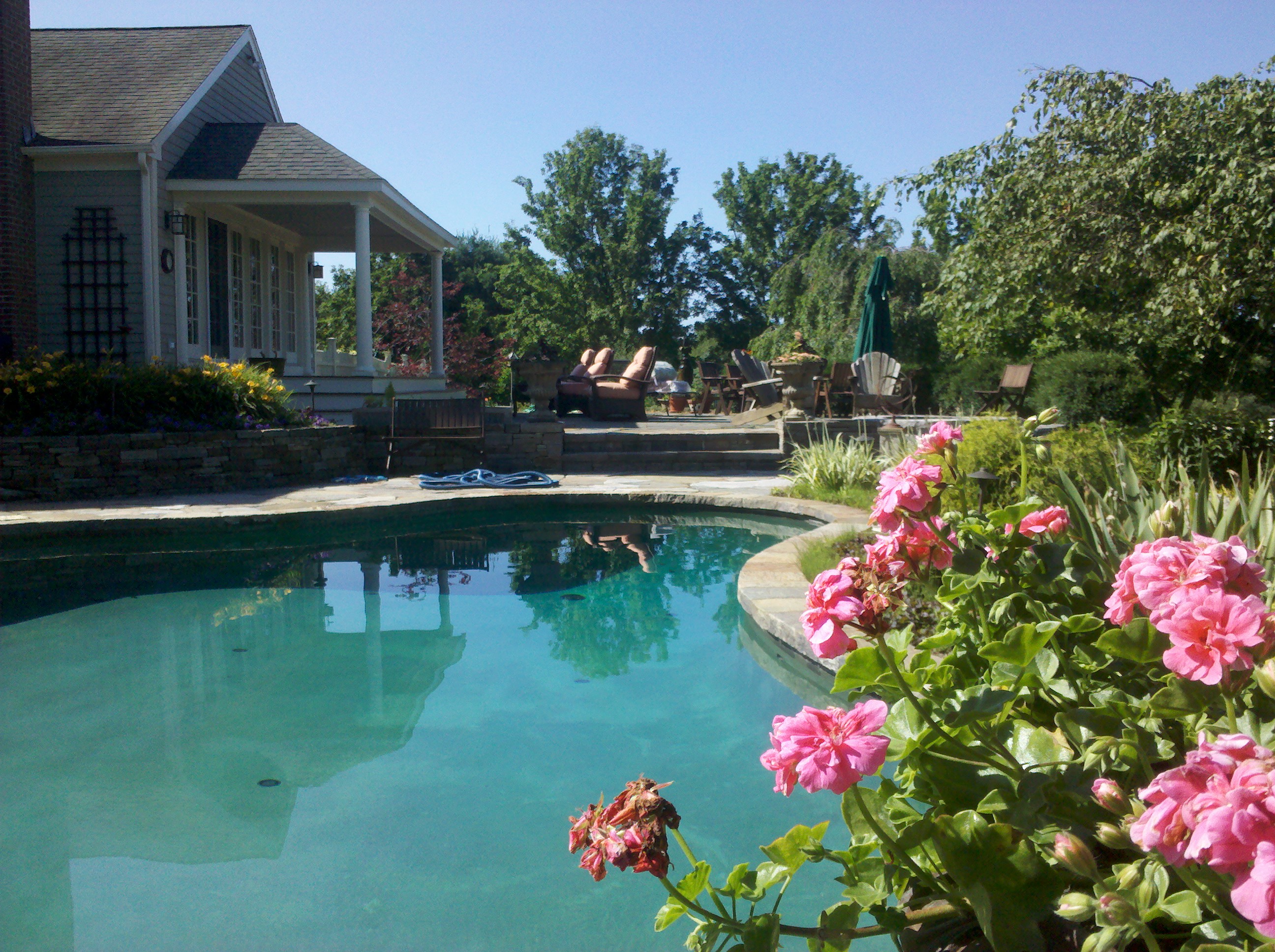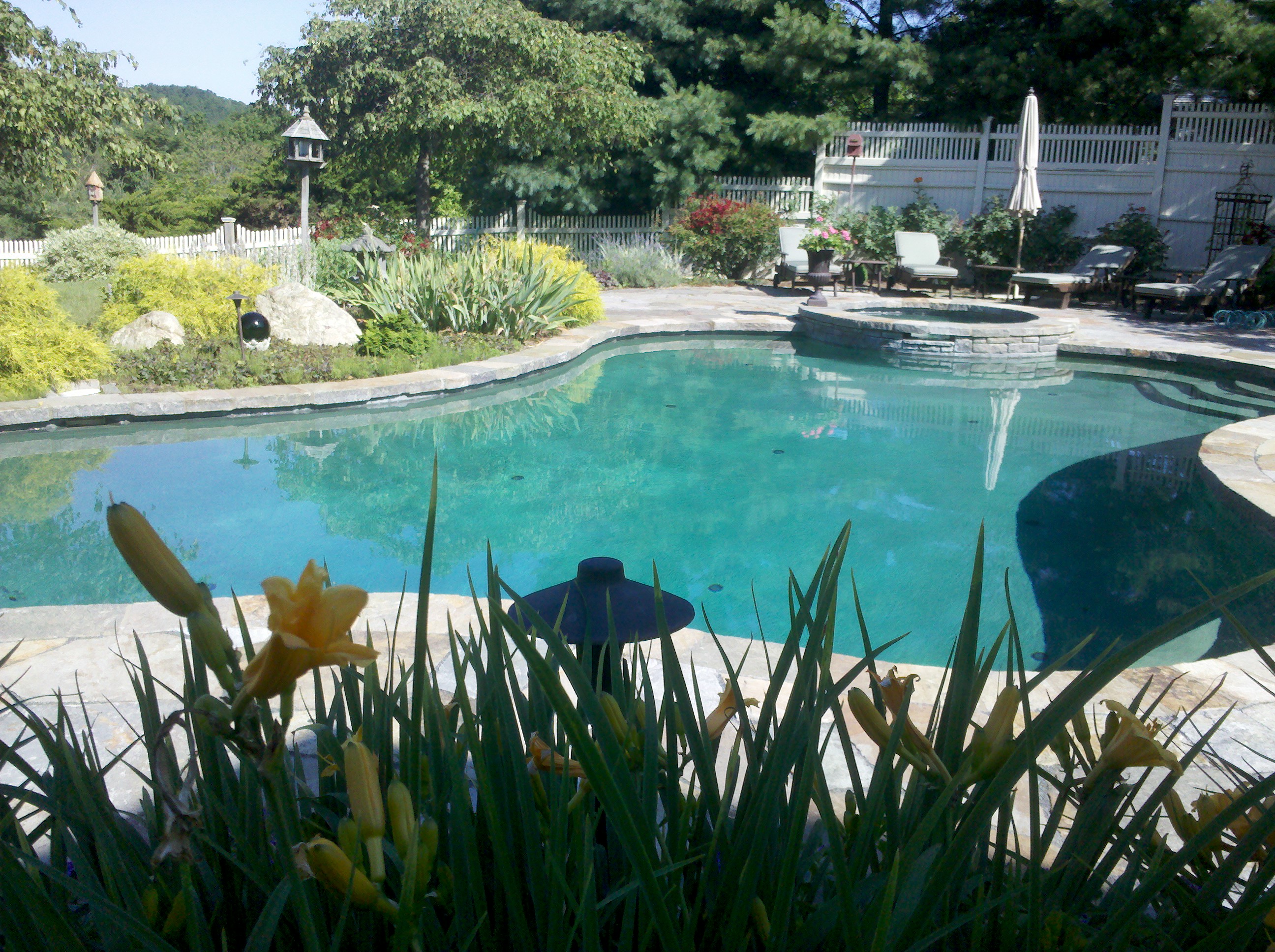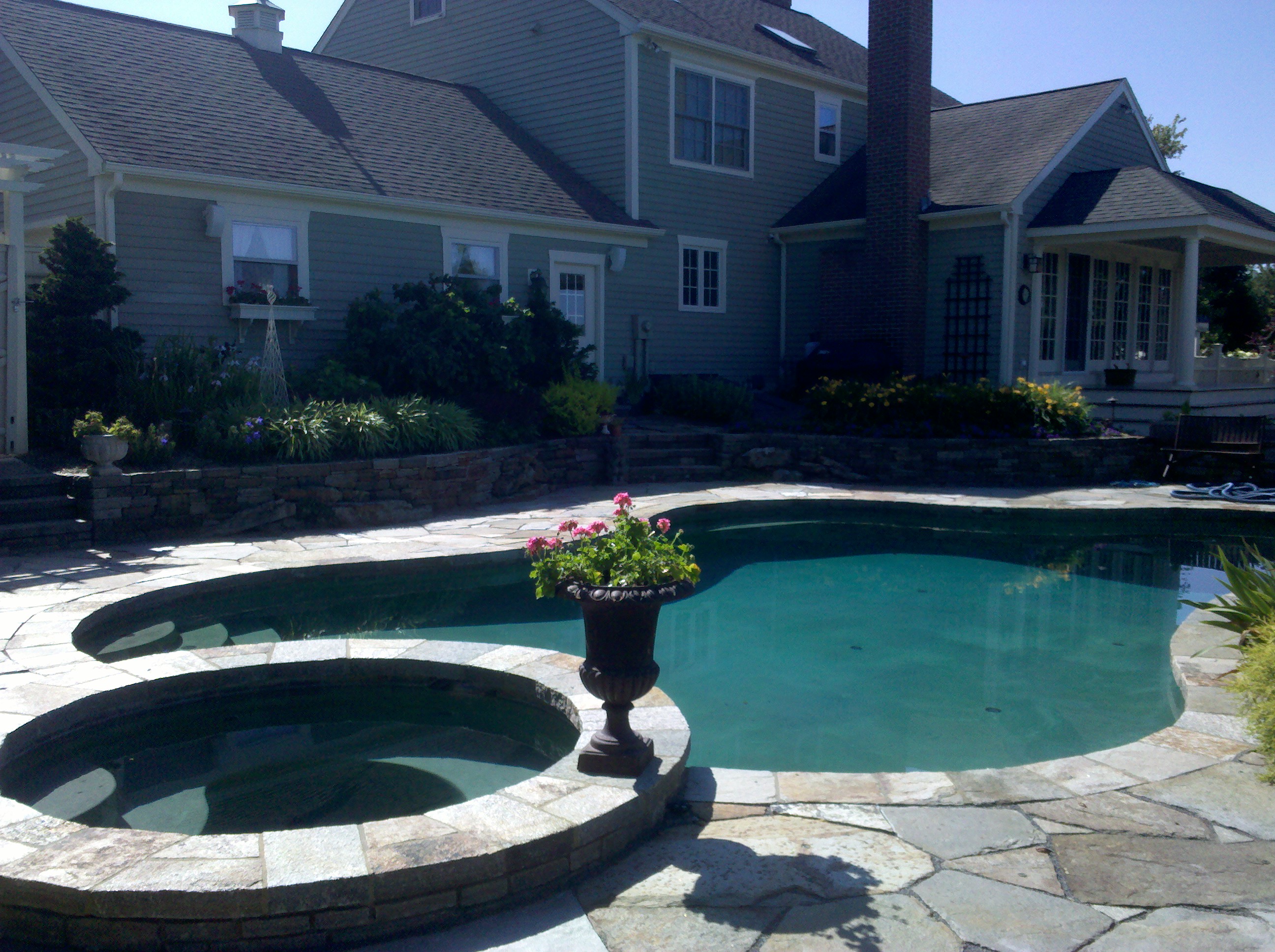 this pool patio. The integrity of the stone has a tendency to deteriorate over time. Required maintenance is essential and could be a bit costly at times. However it is the least expensive approach to keeping your pool patio looking and feeling new. Go onto http://www.outdoorlivingCT.com to see more projects by outdoor living designer Michael Gotowala of Preferred Properties lsc and masonry