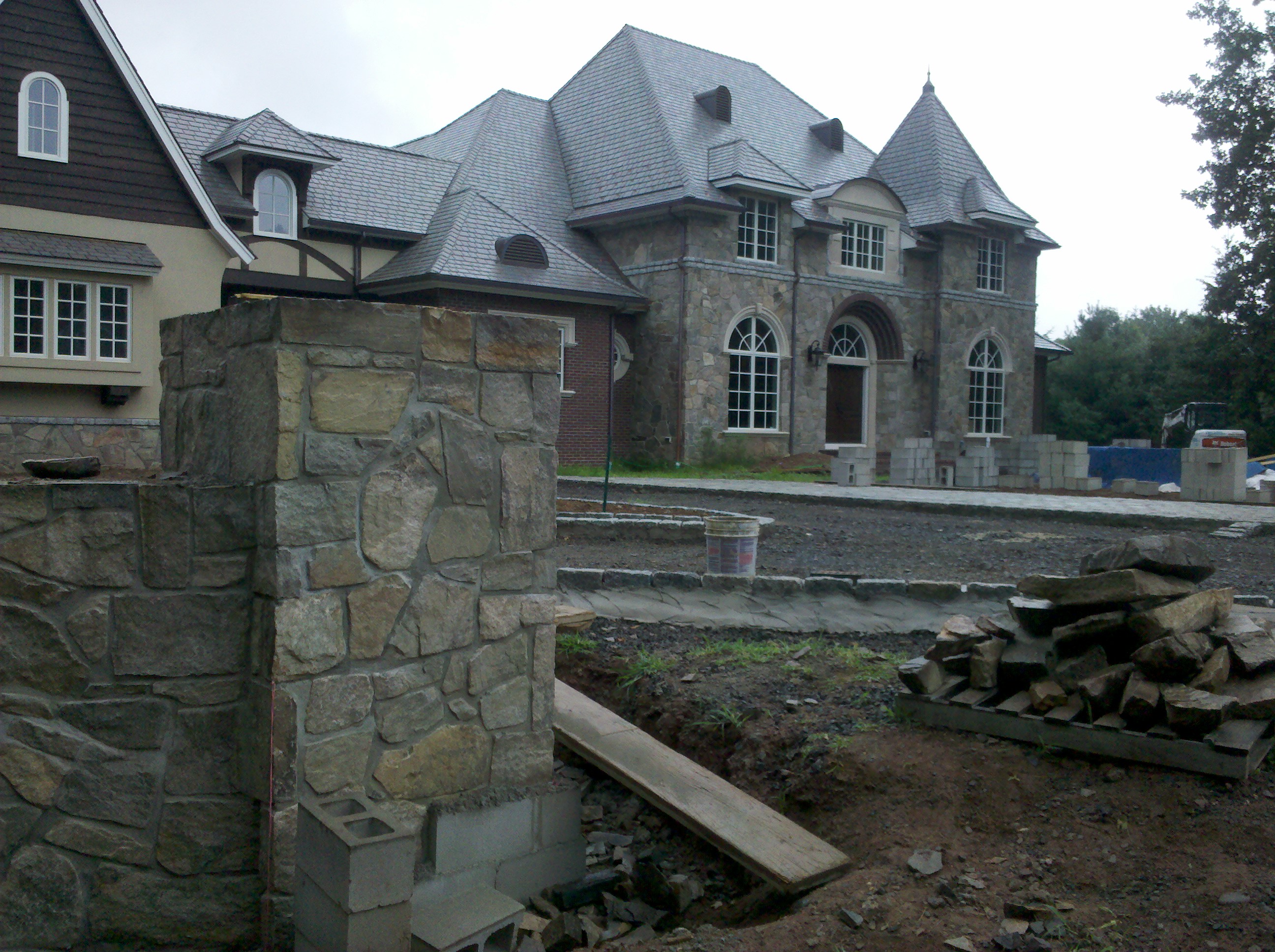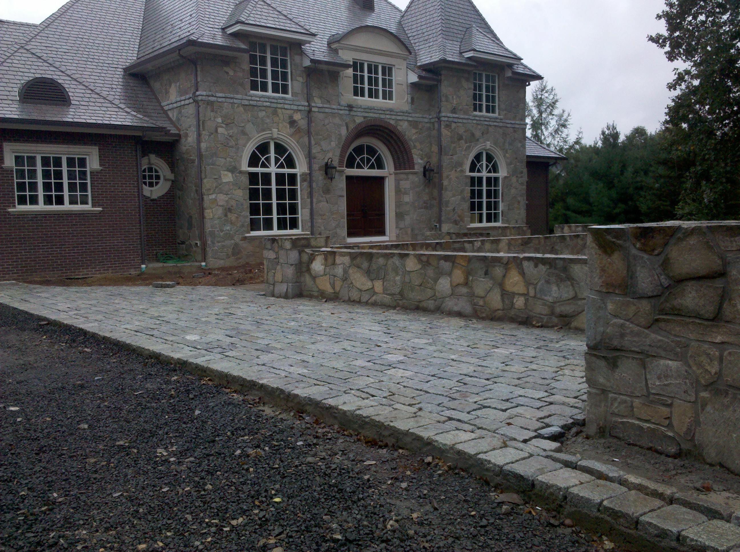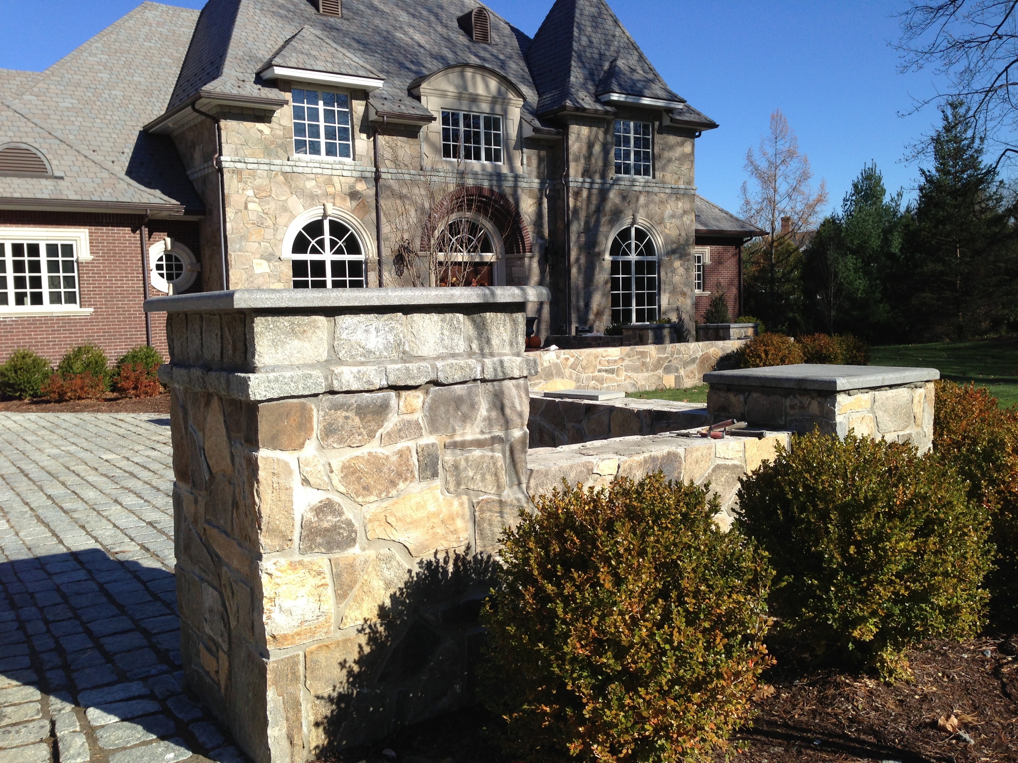 Preferred Properties landscaping designer Michael Gotowala keys in on similarities of the elements used in the architecture of this home in the landscape to complement and adorn the appeal of this Connecticut residence. This tremendous luxury mansion began to feel more like home from the outside relative to the interior due to the connectivity of the landscape. The outdoor landscape design is heightened by emotion and excitement due to the level of extensive masonry, maturity and quality of plant materials, outlay and design of pavers, highlighted by night lighting. Masonry of all types including brick, block, granite, fiekdstone and cobblestone make this luxurious residence even more outstanding. This video series shows the Masonry phase on its last section of walls.