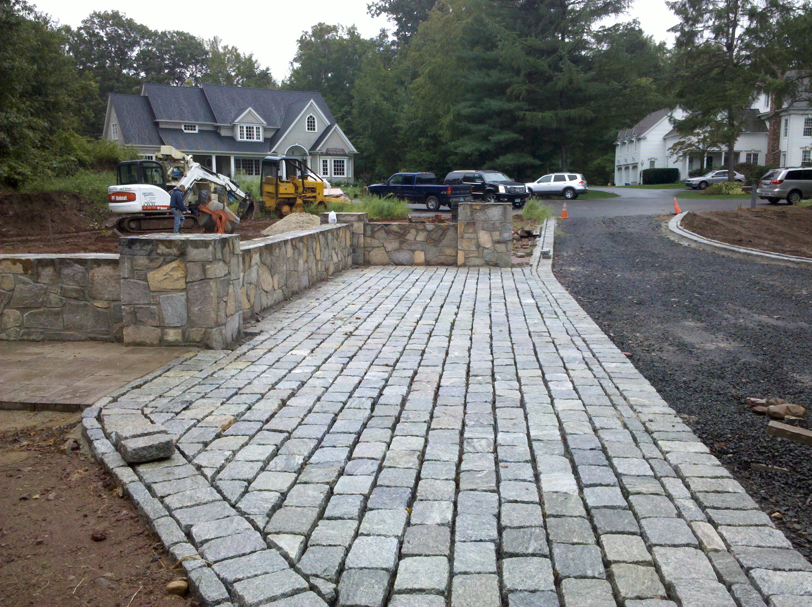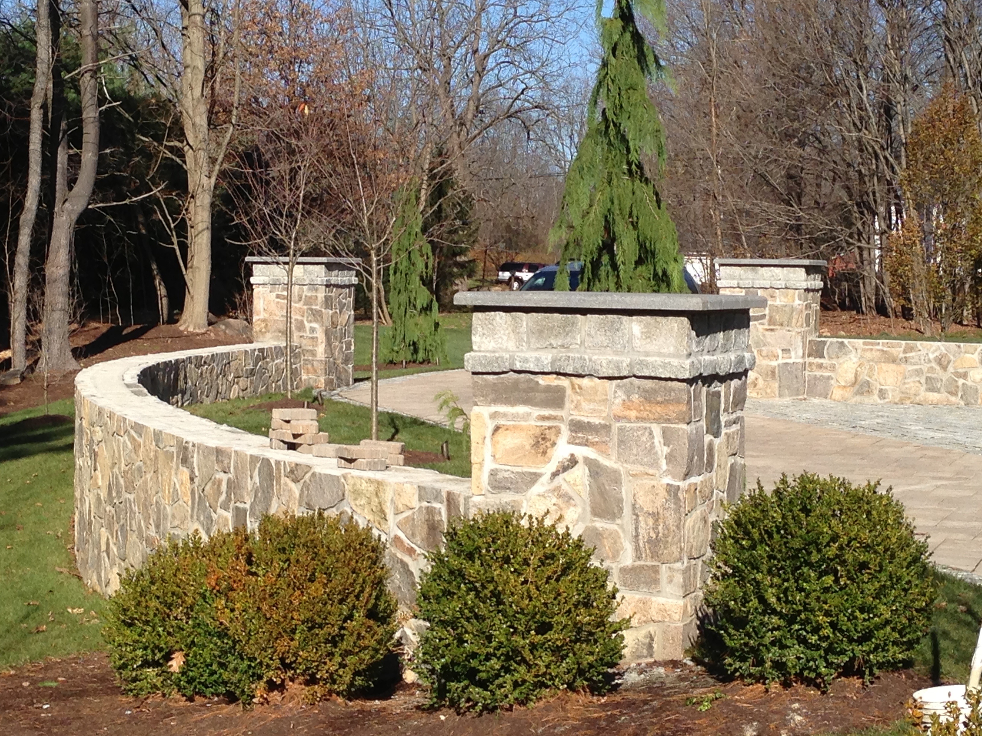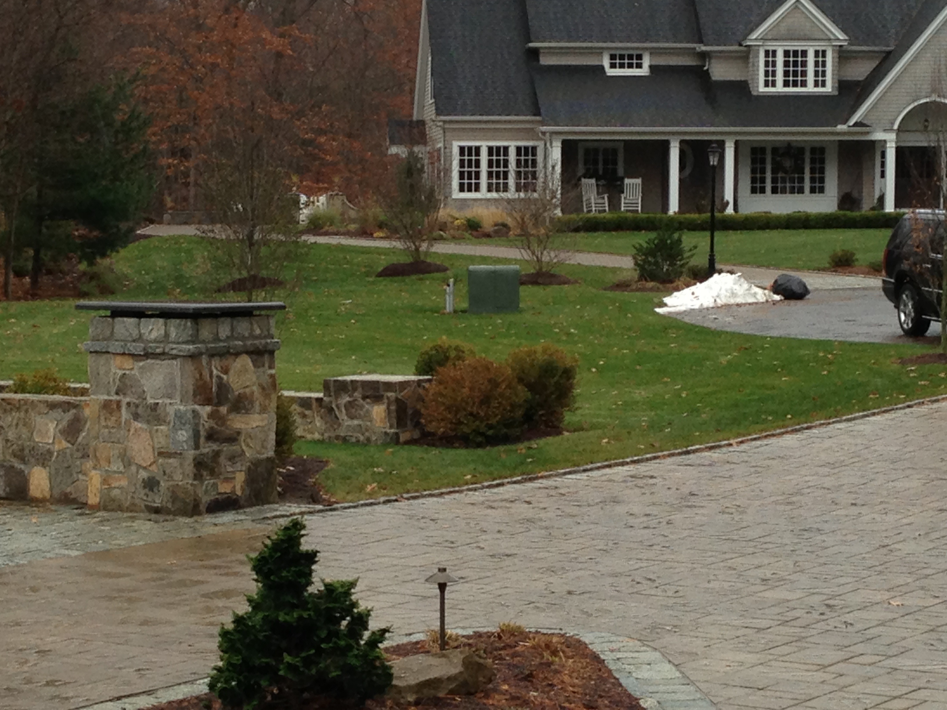 Preferred Properties landscaping designer Michael Gotowala keys in on similarities of the elements used in the architecture of this home in the landscape to complement and adorn the appeal of this Connecticut residence. This tremendous luxury mansion began to feel more like home from the outside relative to the interior due to the connectivity of the landscape. The outdoor landscape design is heightened by emotion and excitement due to the level of extensive masonry, maturity and quality of plant materials, outlay and design of pavers, highlighted by night lighting. Masonry of all types including brick, block, granite, fiekdstone and cobblestone make this luxurious residence even more outstanding. This video series shows the Masonry phase on its last section of walls.