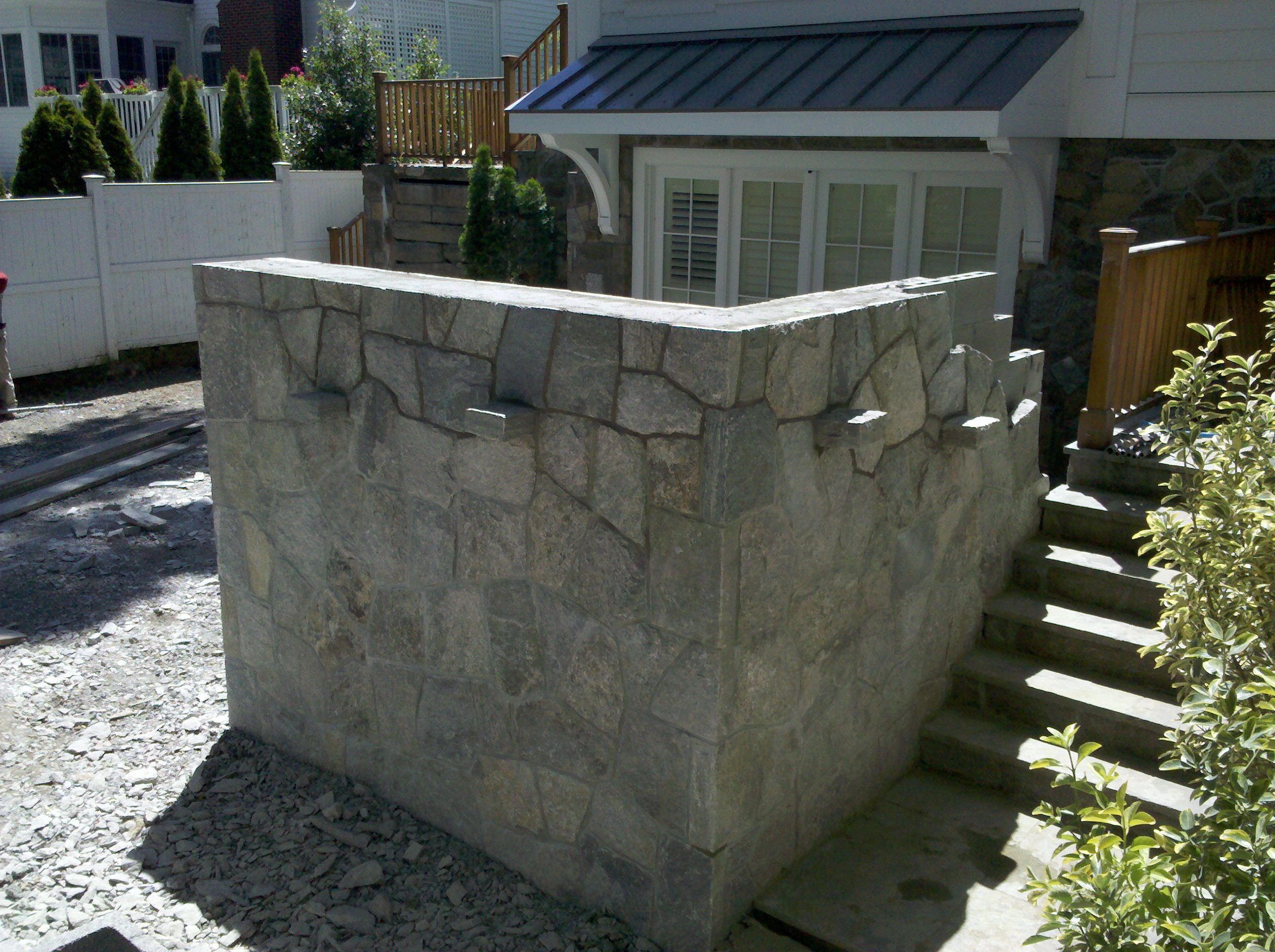 Outdoor living has quickly become the hottest trend in residential home improvements. With over twenty six years of residential design build vision and experience, Preferred Properties Landscaping and masonry has certainly contributed to raising living “Well” beyond the walls of your home a dream come true reality. Included in this jaw dropping sunken terrace one Can experience the realism of living outdoors. Preferred Properties outdoor living designer Michael Gotowala helped the homeowners invision an area off the grand Lower reckroom that enabled one to meander up to a swim up hot tub surrounded By stone walls with rock ledges to hold candelabras. On the far anchoring corner one could enjoy sitting on the stone wraparound granite firepit cooking smoirs n such. The far back wall high enough.for the yard to withhold some depth as well as nice planter beds. The bluestone coping chosen to match the existing. One of the last tidbits left was to template and fabricate the granite countertops to cover The outdoor bar/beverage center n swim up spa. If you are at all interested in an outdoor living project such as this Please don’t hesitate to call or text.