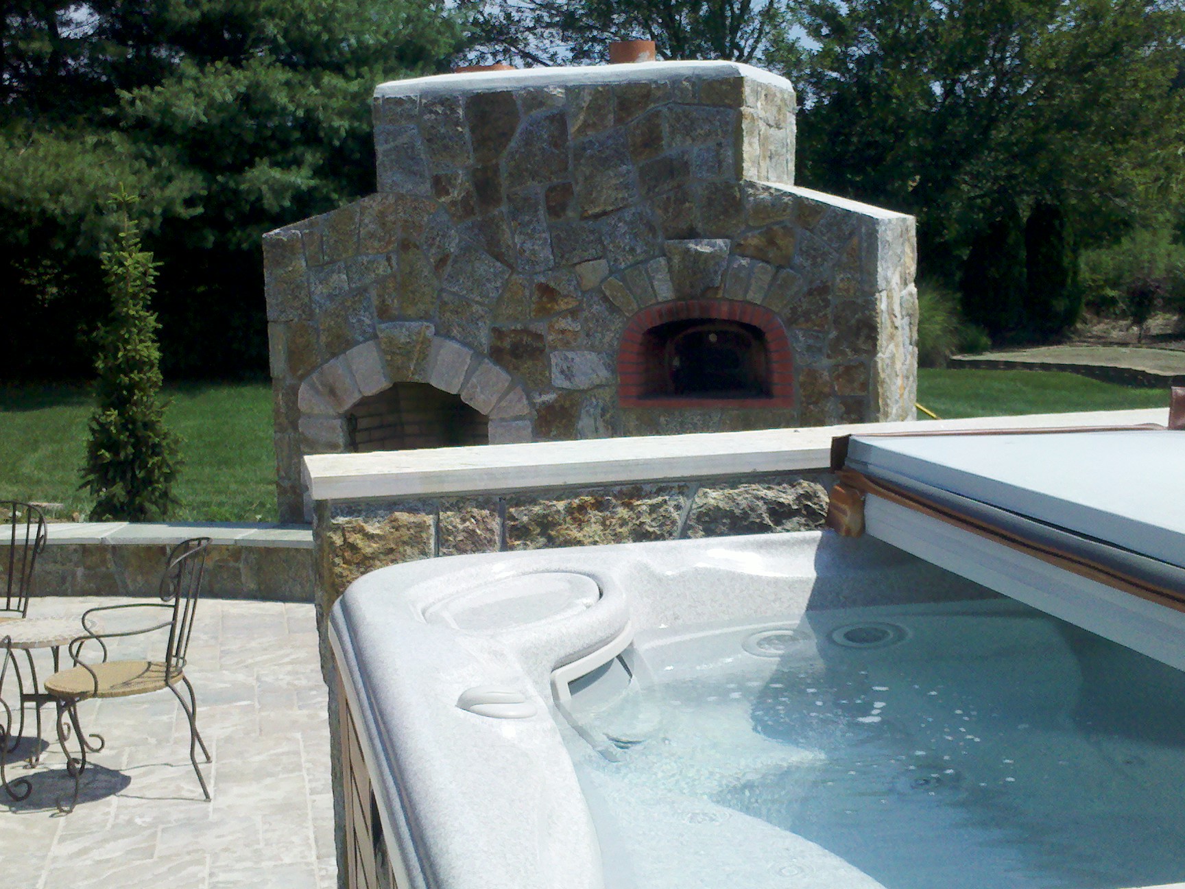 Outdoor kitchen , fireplace with pizza oven and spa. A special place for everyone in the household