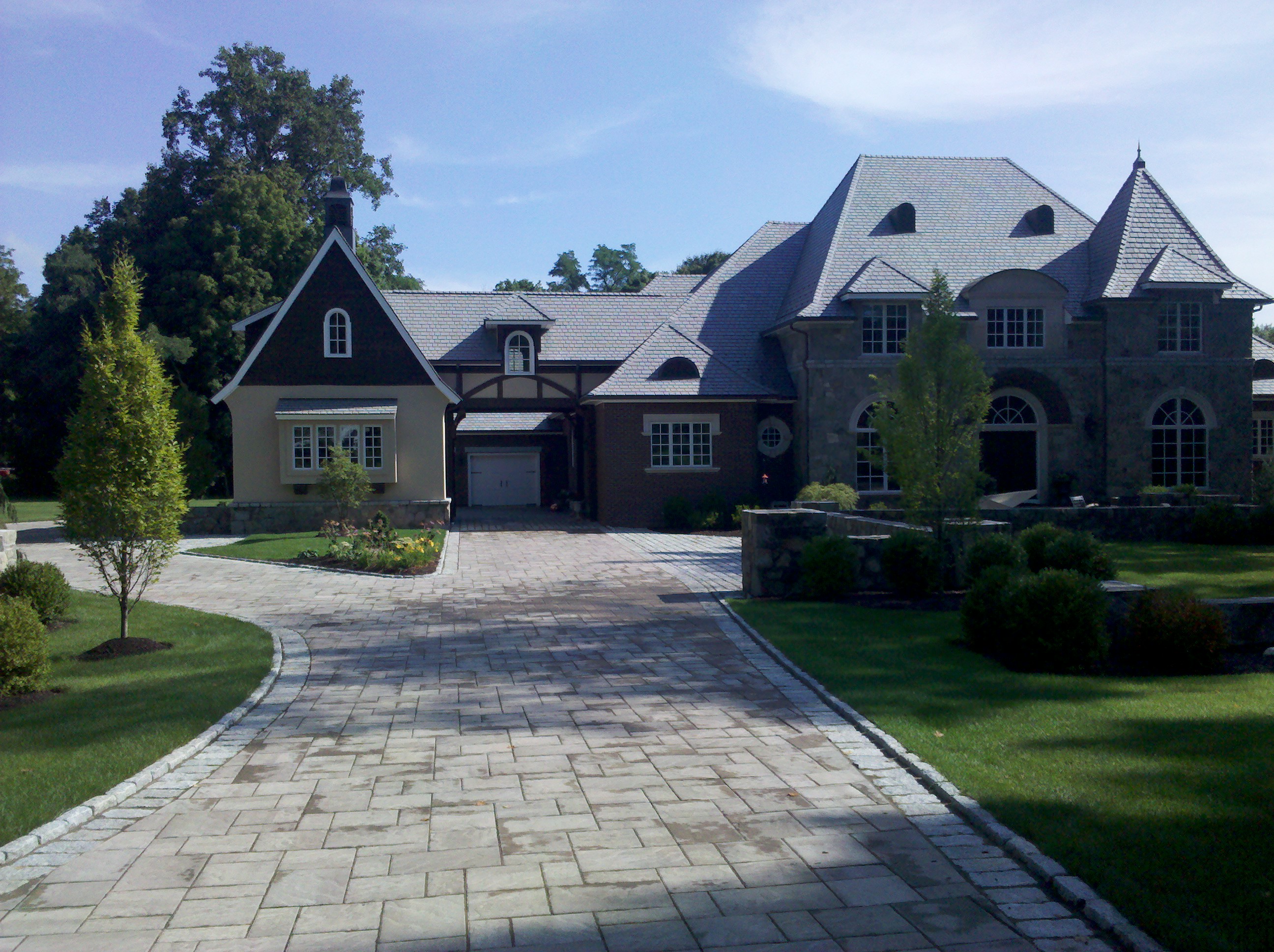 Its not always the case to have such a special home and trusting homeowners to allow my vision and experience allowing us to  transpire this new construction project into a very deserving Landscape complete with Stone  walls, Brick paver drive flanked with cobble entries, towering columns, exquisite landscaping, lush sod and nightlighting all strategic in place. Last but not least the masonry capsvery special in design as well to be installed this fall to complete this landscaping project. Categorized as a most deserving design even with the copingdesign to pull the cobblestone edging off the drive and reflect cobblestone patterns likened on the house. A graceful and beautiful landscape for the intelligent  young professional family as even was considered in design to minimize the up keep and maintenance on the landscape and masonry. The look and placement of all the trees specific in design and placed in locations envisioned by Landscape Designer Michael Gotowala to accompany the curb appeal, hold the masonry frame and become featured when lit at night. “Its an exciting progression to take a site the whole way into the end zone” Even in phases although very brief on this project the landscape and masonry are so complimentary of this incredibly tasteful Connecticut residence. Its apparrent that the outside was professionally thought out. The results a A++ as the neighbors recognize the effort of the street. This end of the culdesac home has curb appeal, regal and a friendly welcoming status allowing family to sit out front as the children play in the culdesac.