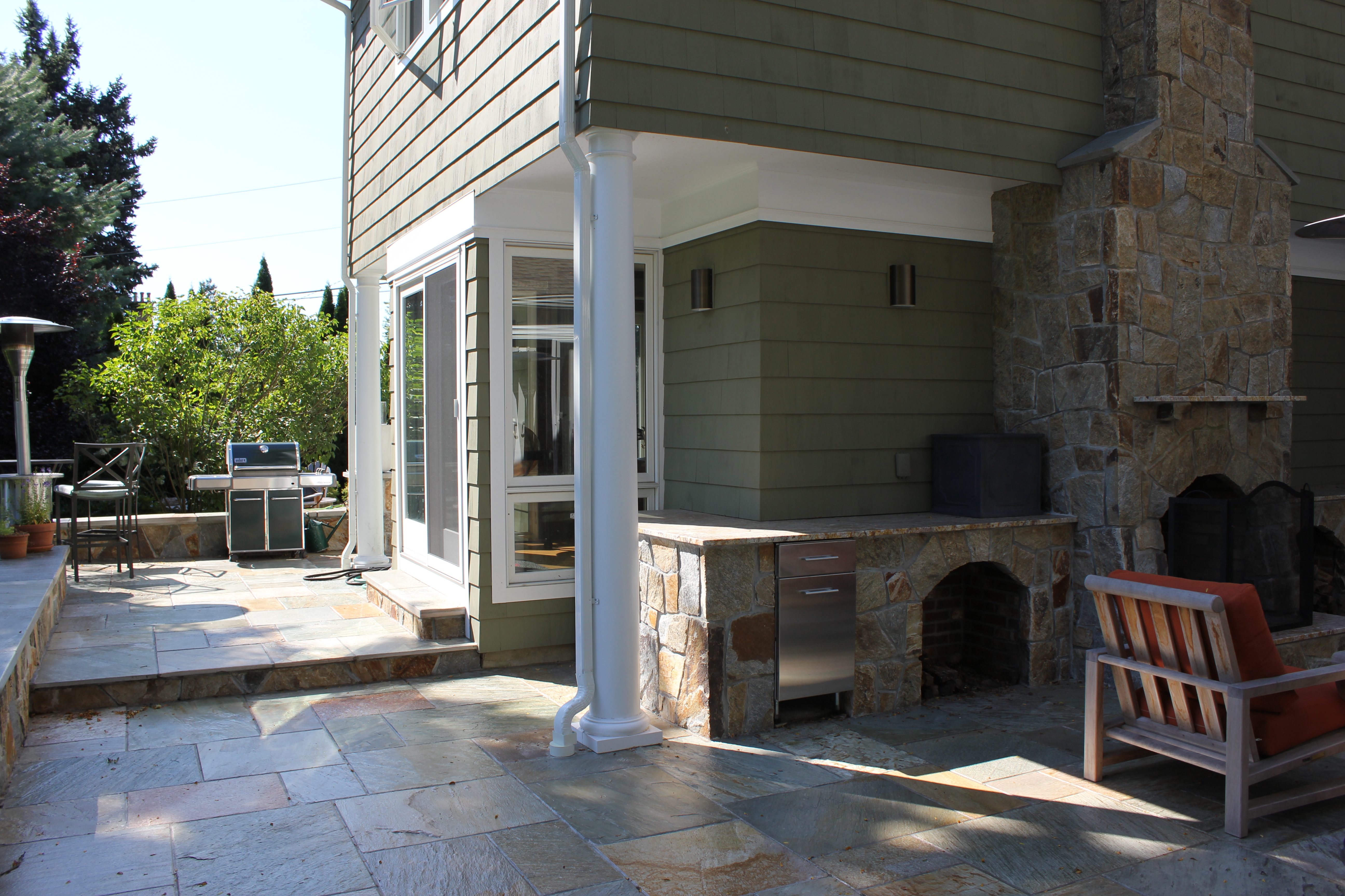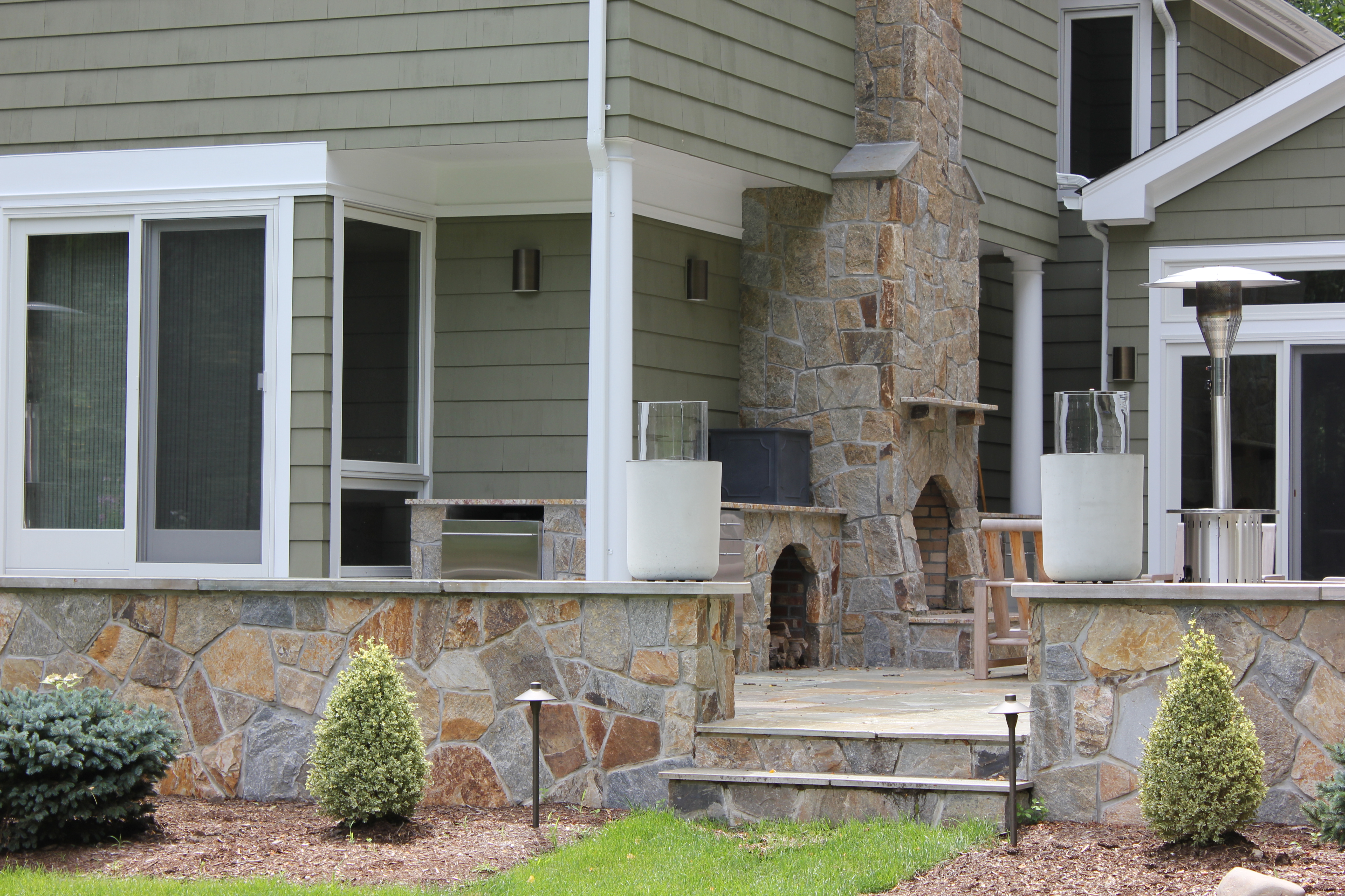 Preferred’s complete with landscapers, Nursery men, horticultural experts, stone setting Masons, outdoor fireplace builders, nationally acclaimed outdoor kitchen builders and even licensed for outdoor lighting and home improvement additions such as the rear of this Westport extreme home addition.