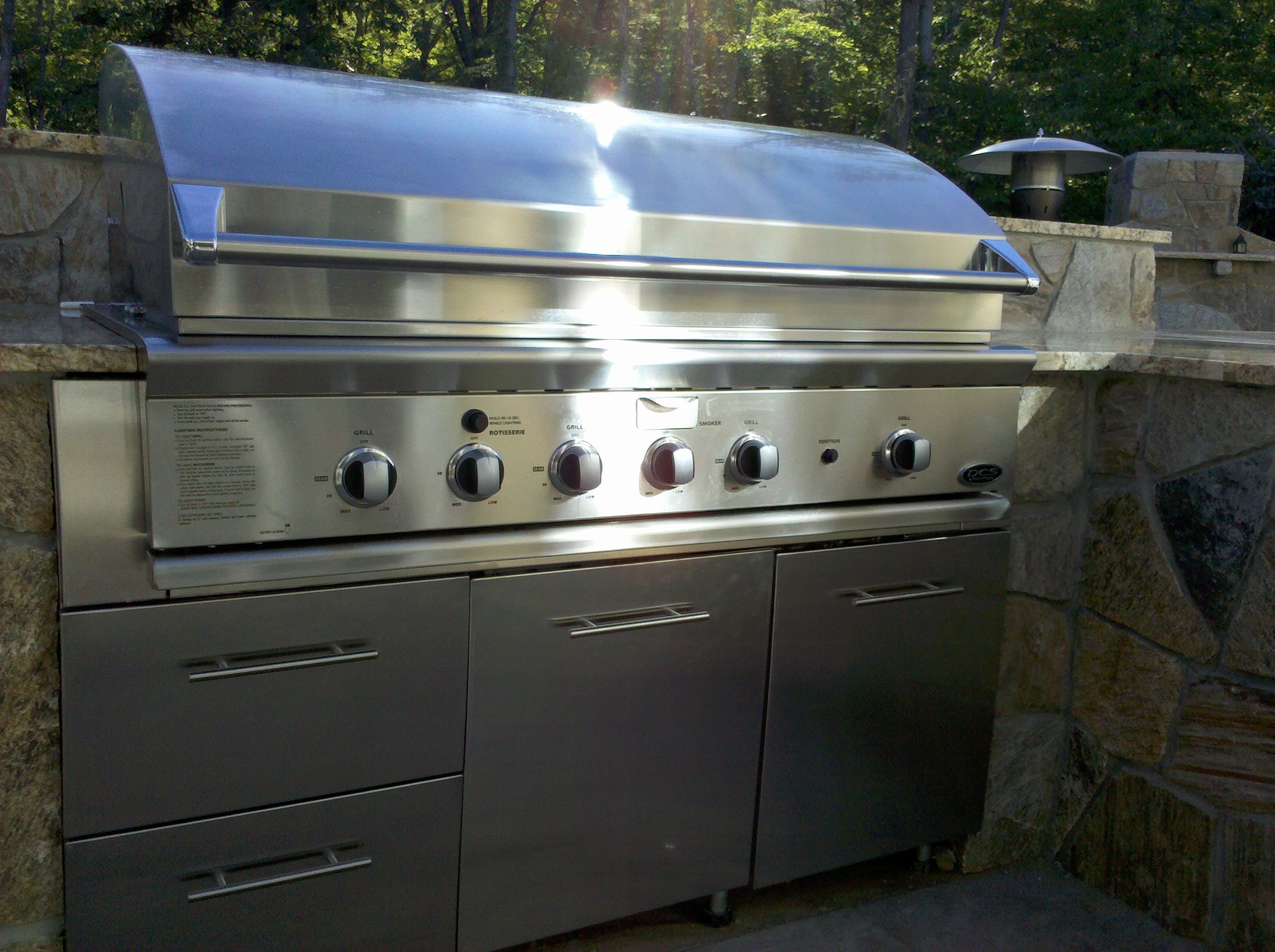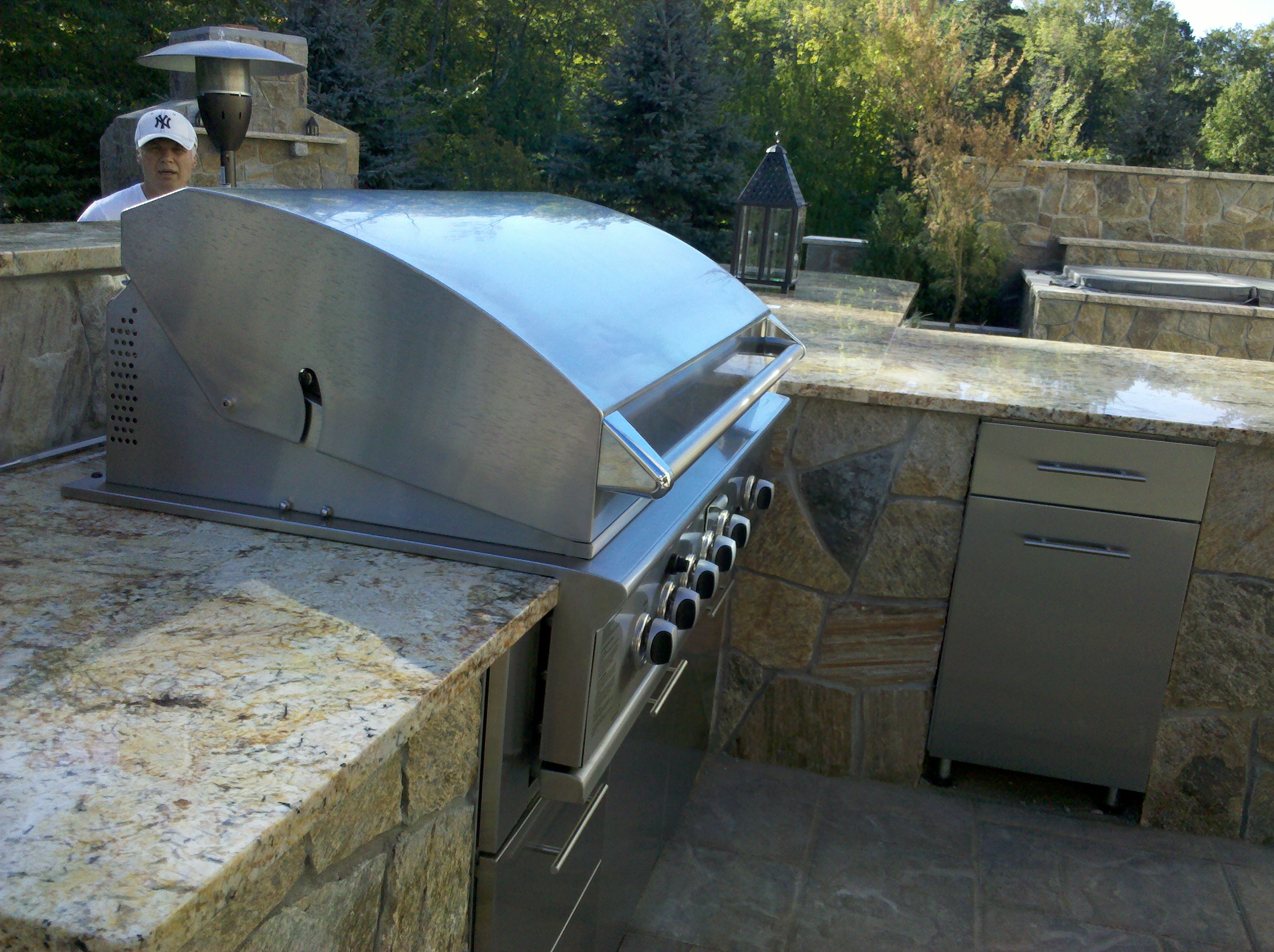 Outdoor accoutrements here are DCS 48″ Grill, Summit Refrigerators, Danver Cabinetry,