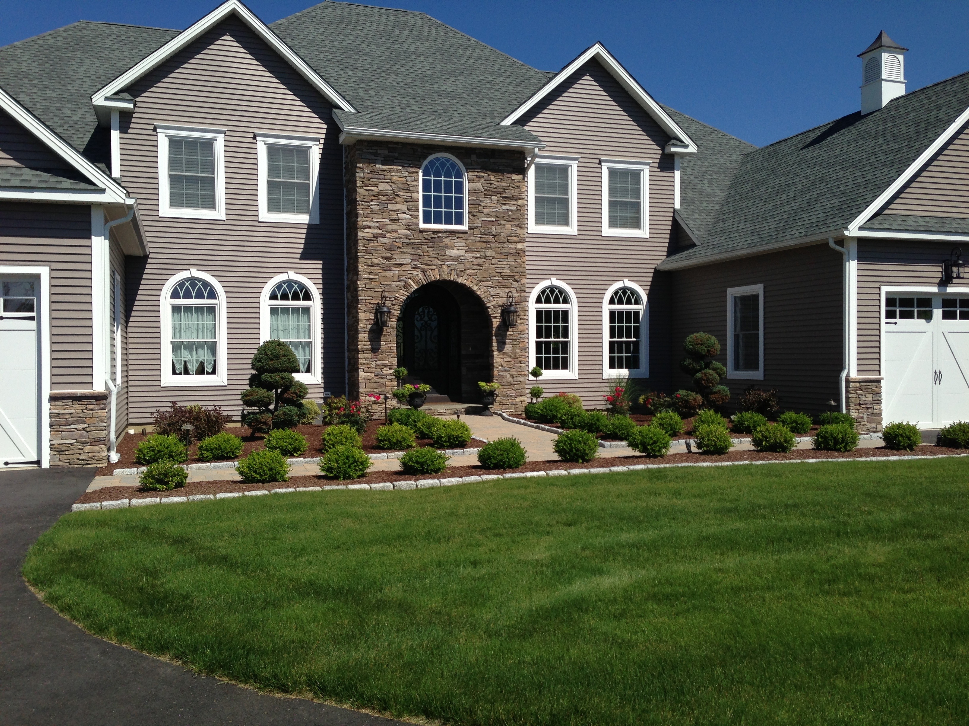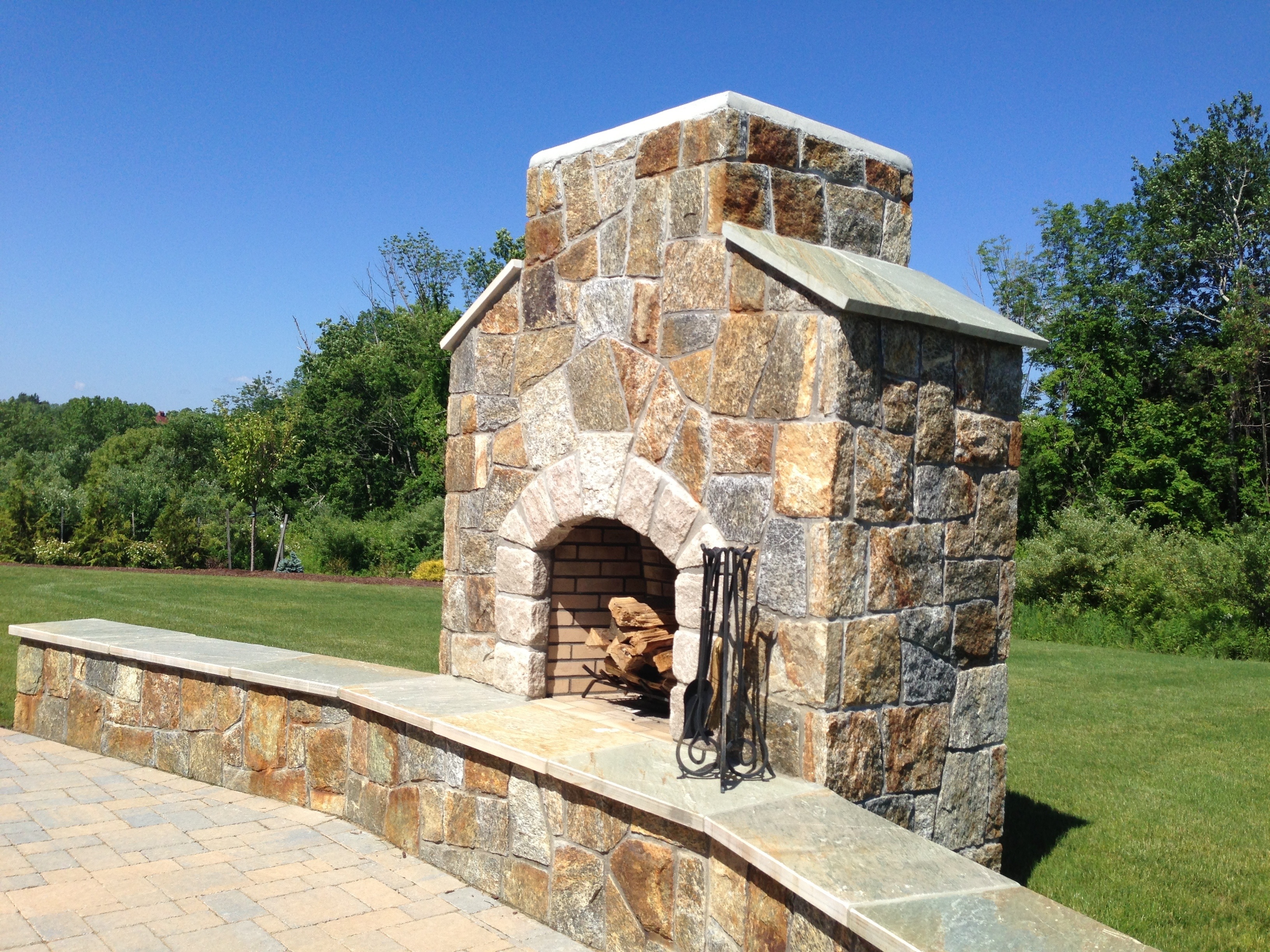 After consulting about the dual purpose of the home, Michael Gotowala outdoor living designer had a dual purpose for the landscape design, sitting walls, outdoor kitchen, spa and centrally located magnificent stone fireplace.
