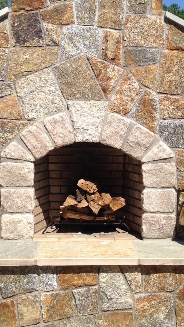 The result exclaimed outdoor designer Michael Gotowala of Preferred Properties was awesome. The huge stone fireplace seen by both ends of each homes central living areas. Great focal anchoring the stone sitting walls.