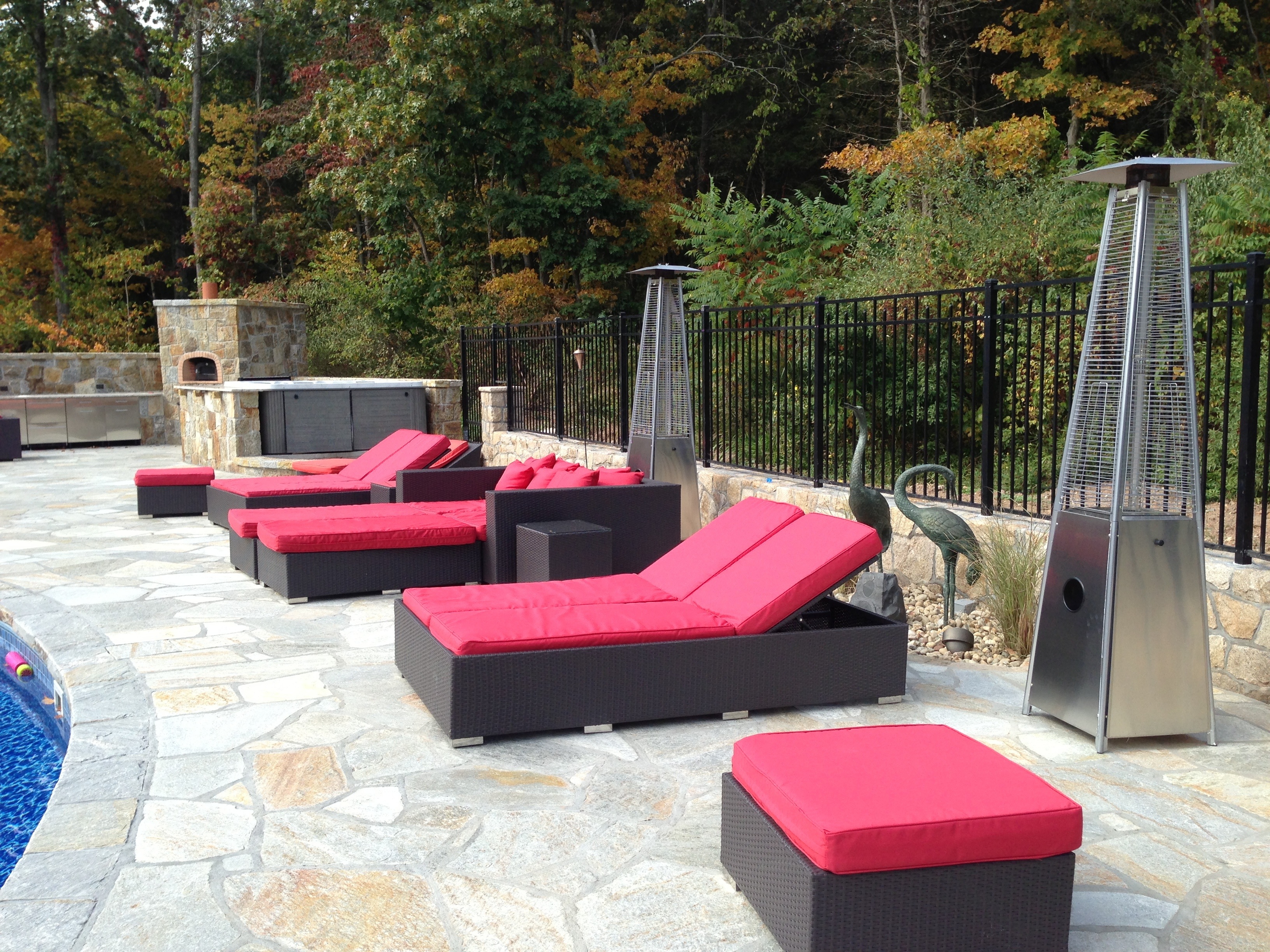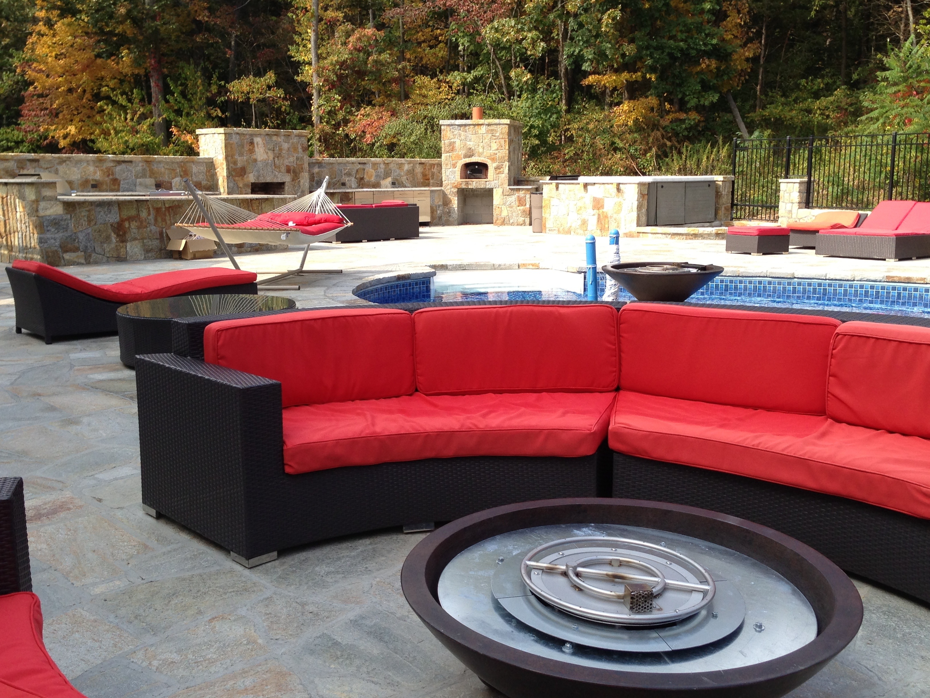 Outdoor living design ideas primarily put into place making it a priority to relax, enjoy and converse with friends and family over and over again. The greatest highlight of this project is the magnificent outdoor kitchen complete with infrared grill, outdoor refrigeration, outdoor bar and beverage center, warming drawer, lobster burner, power burner, outdoor fireplace and even an outdoor pizza making station. Remote gas firepits and firebowls add ambiance to the landscaping and outdoor lighting which guides the party well into the night.