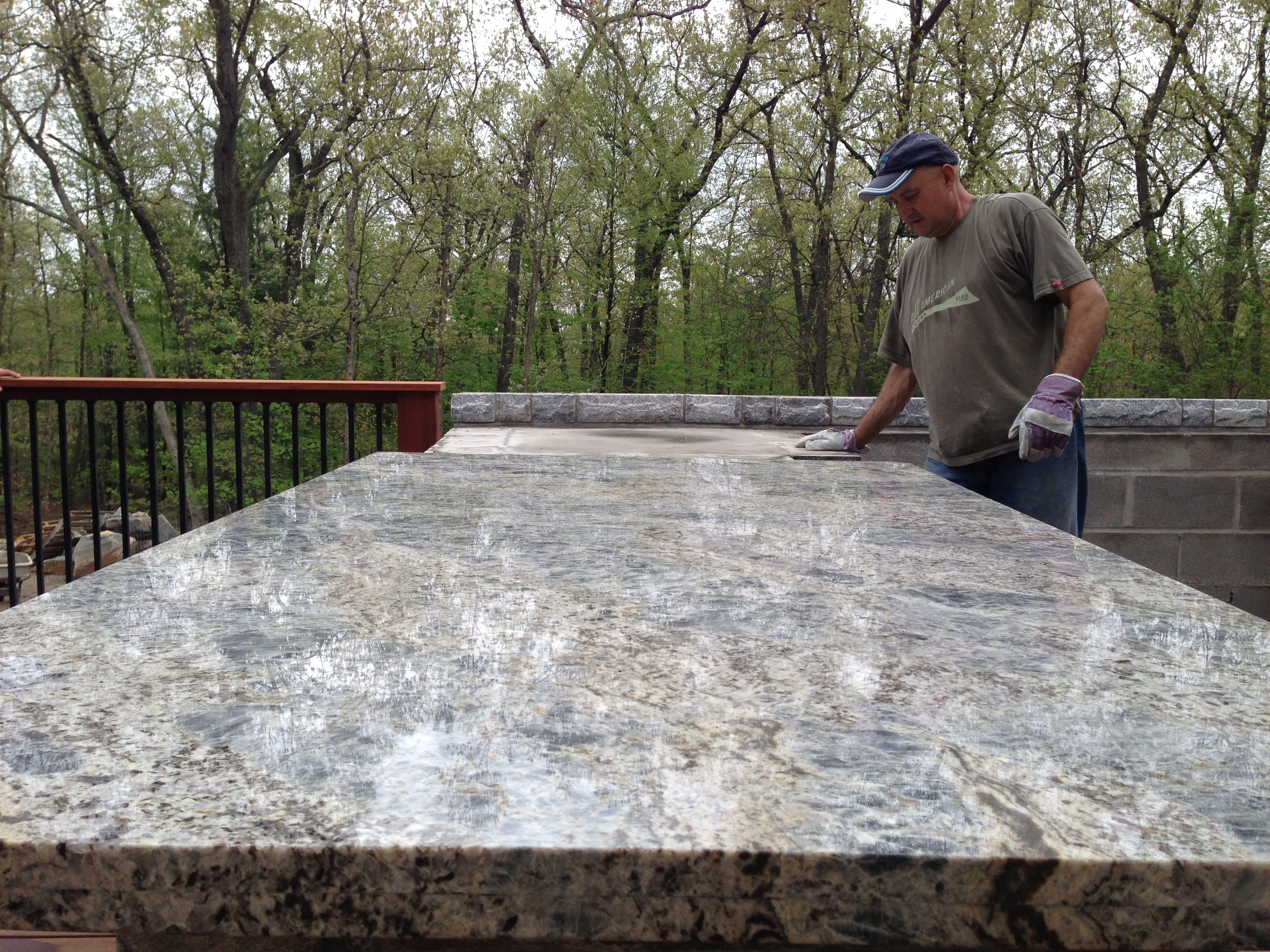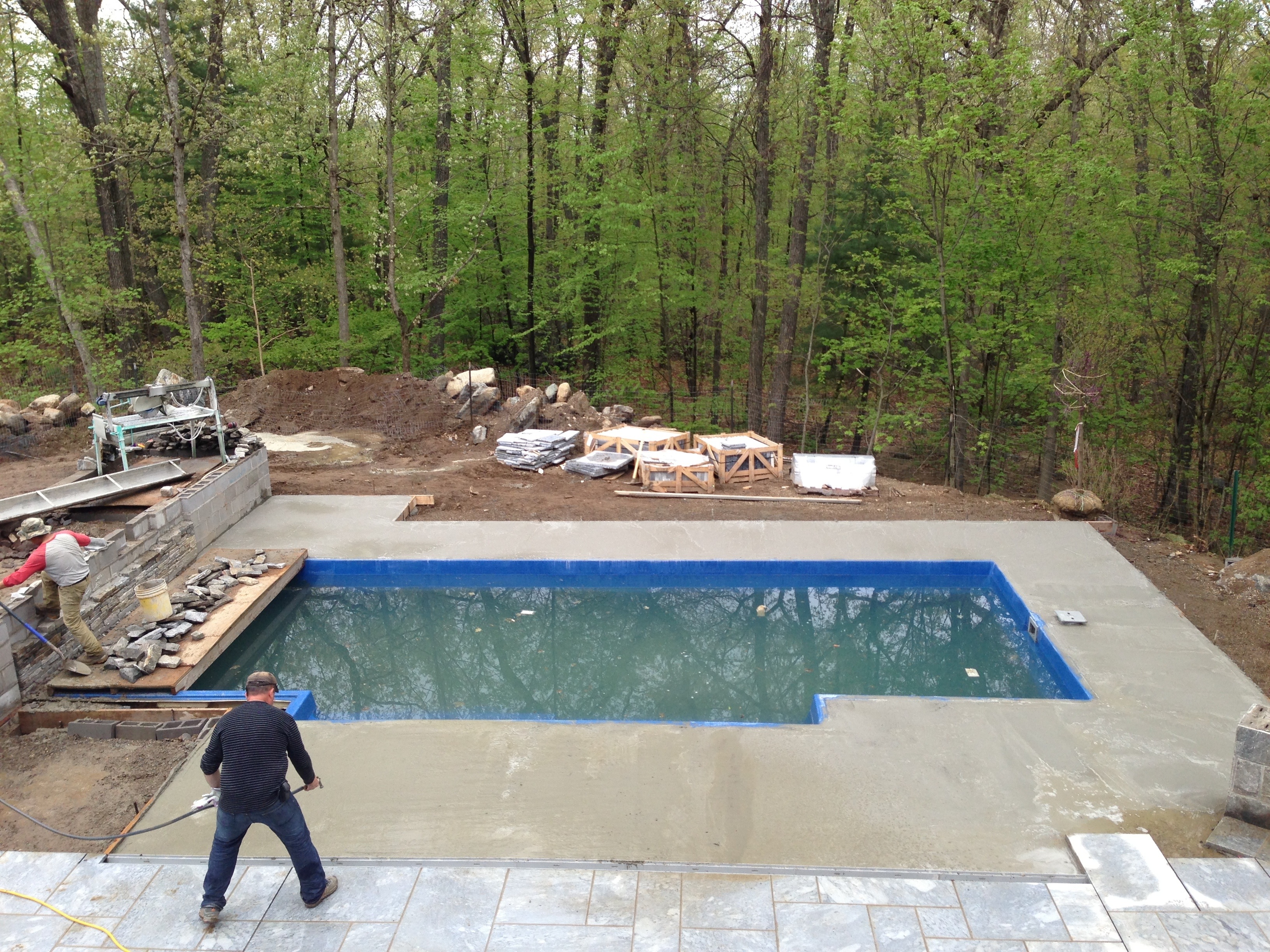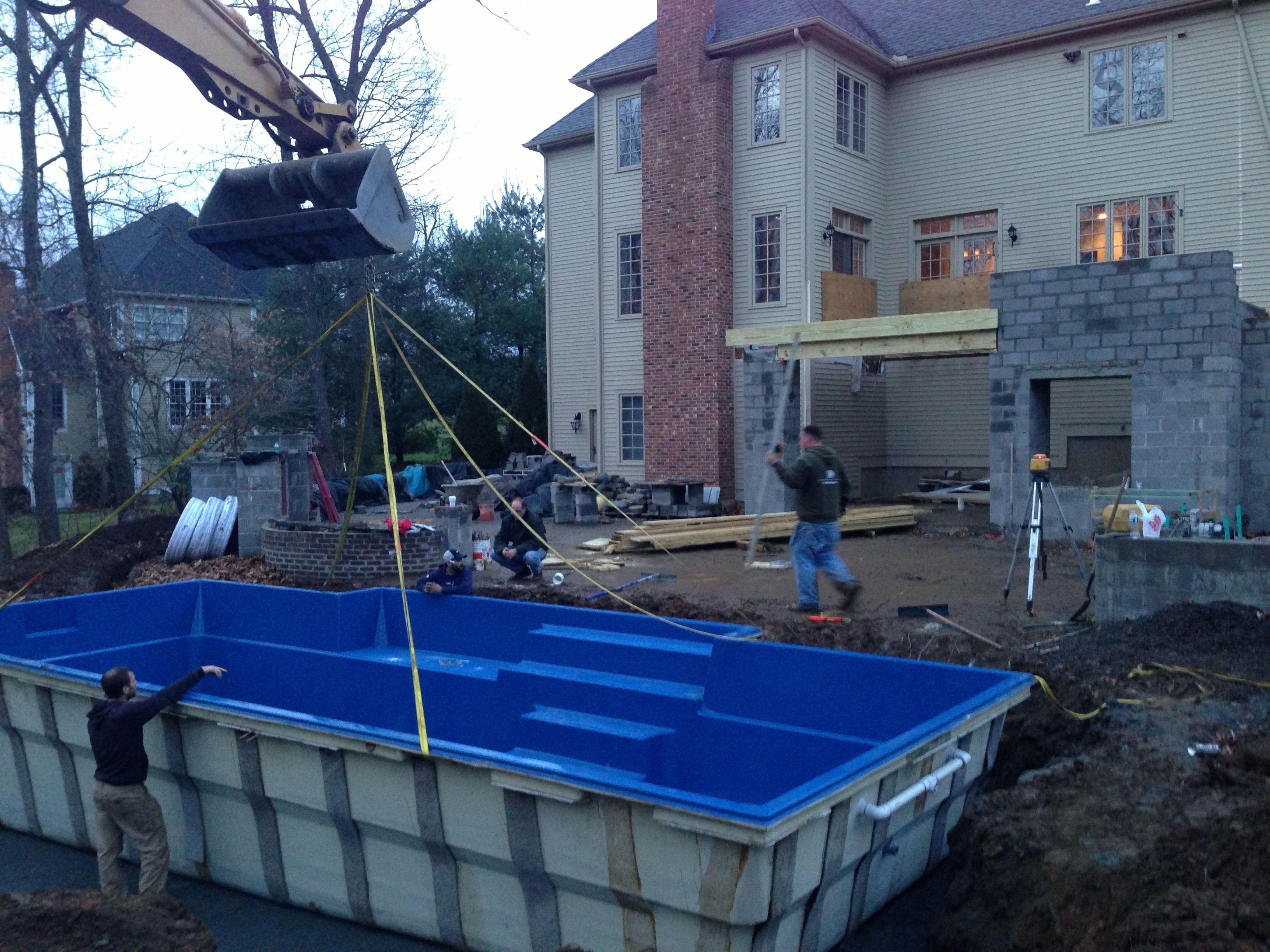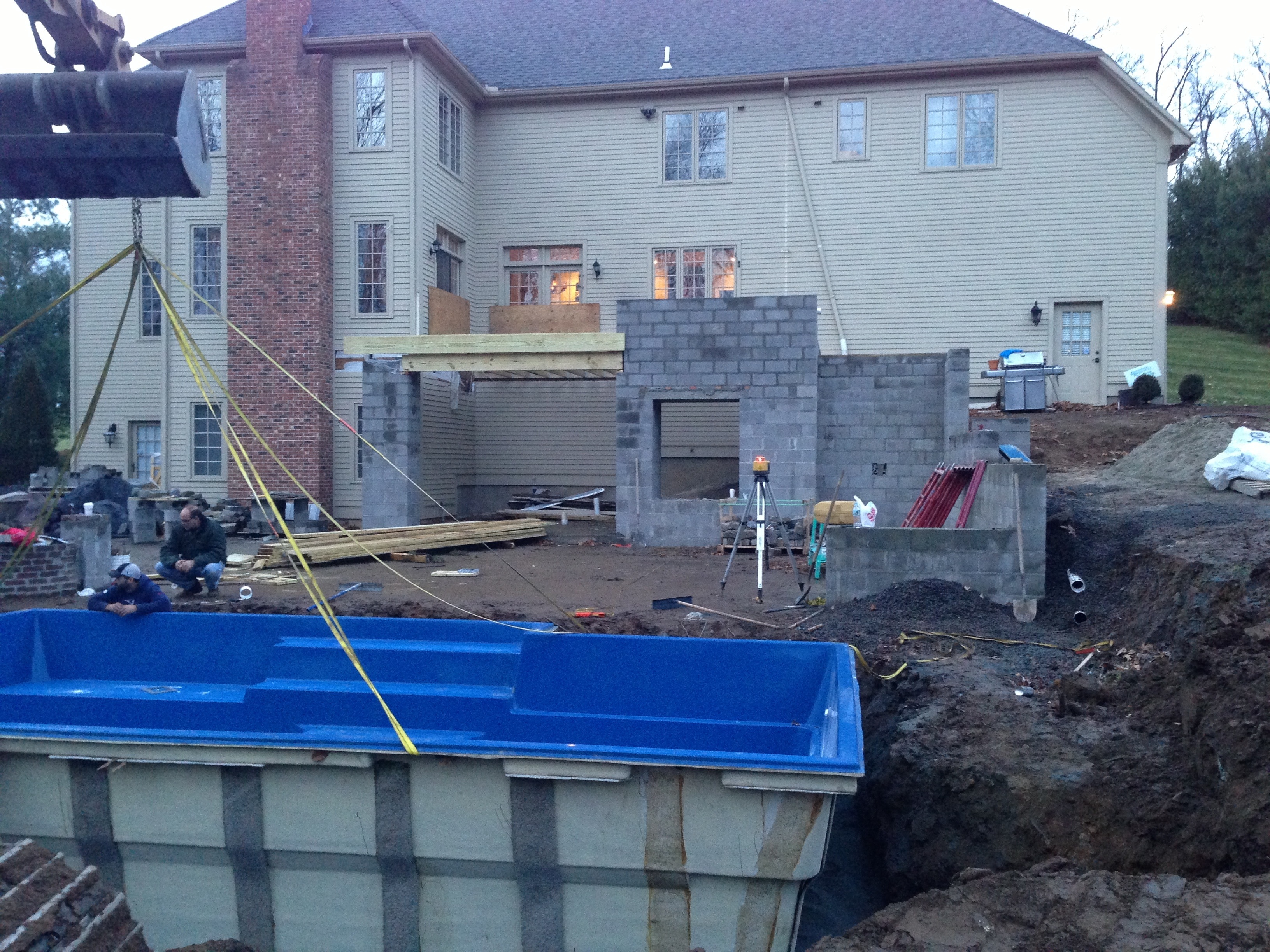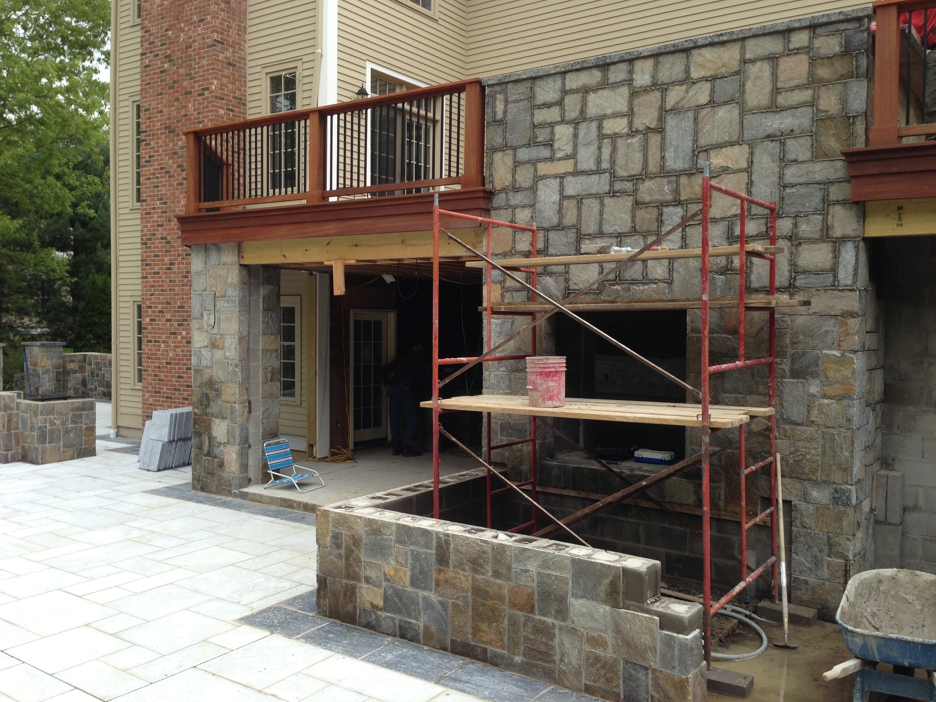 As the enthusiasm built interim the initial construction of phase I. It didnt take long to implement phase II. A Fiberglass pool setting to anchor the end of the marble patio. So in addition to the upper level stone grill island, expanded layout of mahogany del to wrap around the towering stone. There is an outdoor hot tub abutting the lower stone tower with pass thru window into the outdoor great room underneath the weather proof Mahogany DECK above.