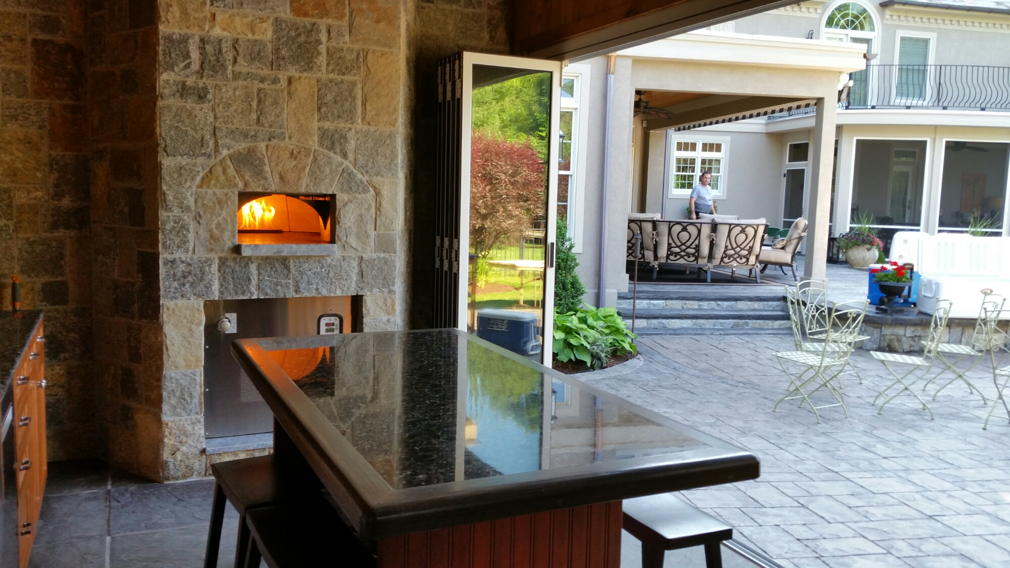 The Wood Stone Pizza oven built into the sidewall of this pool house by Gotowala’s team at The Outdoor Kitchen Design Store by Preferred Properties shows the meticulous masonry and upscale design that makes living beyond the walls of your home outdoors taste fabulous.