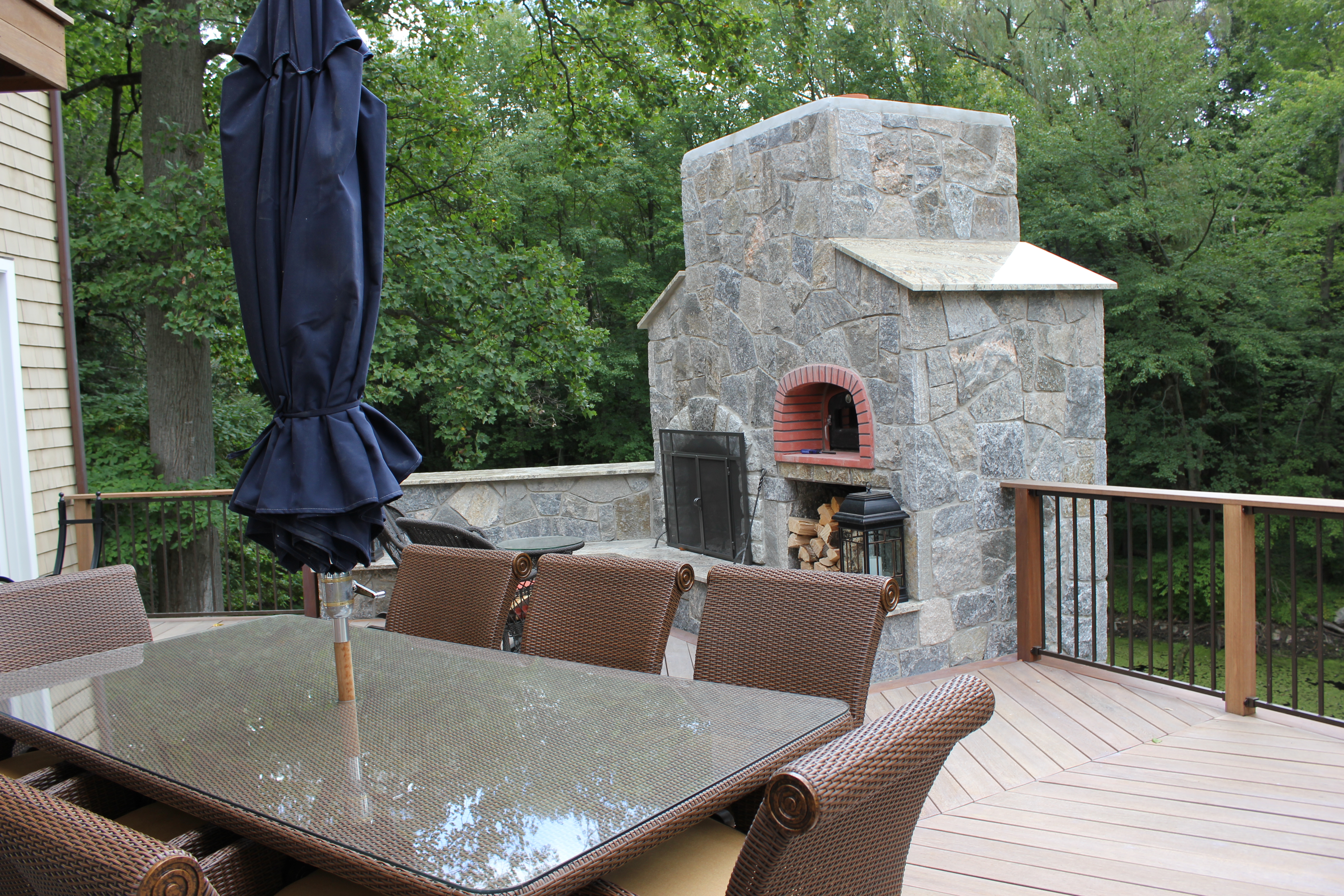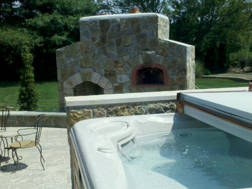 Not only looking handsome and stone tall in the corner of the backyard, The work house of the OUTDOOR KITCHEN can be the same Outdoor fireplace with a slightly Different intent. These type outdoor fireplaces are usually coupled with warming drawers and Hearth ovens. More commonly referred to as Pizza Ovens. This upper level outdoor fireplace with Tuscan wood fired pizza oven looks and tastes fabulous. What a statement an outdoor fireplace can be to Outdoor Living. Outdoor living beyond the walls of your home can feel fabulous too with this wood burning fireplace and pizza oven. Outdoor living fabulously design builder and founder of THE OUTDOOR KITCHEN DESIGN STORE Michael Gotowala has staff of artistic masons performing exemplary masonry building outdoor kitchens and outdoor fireplaces.Outdoor fireplaces stand tall in the Landscape as well as the homescape. It surely comes to reason that Outdoor Fireplaces are amongst the hottest trends in outdoor Living.