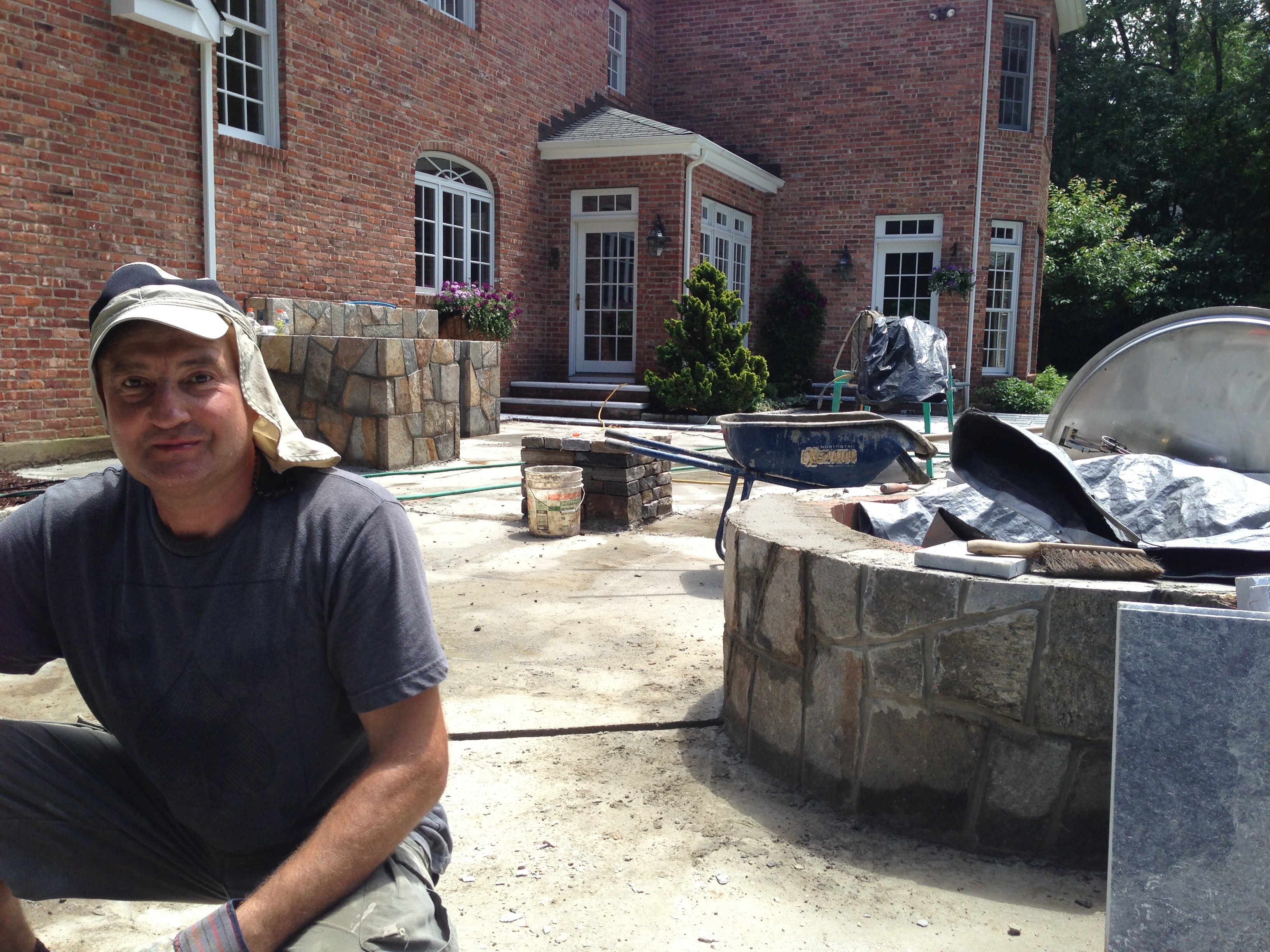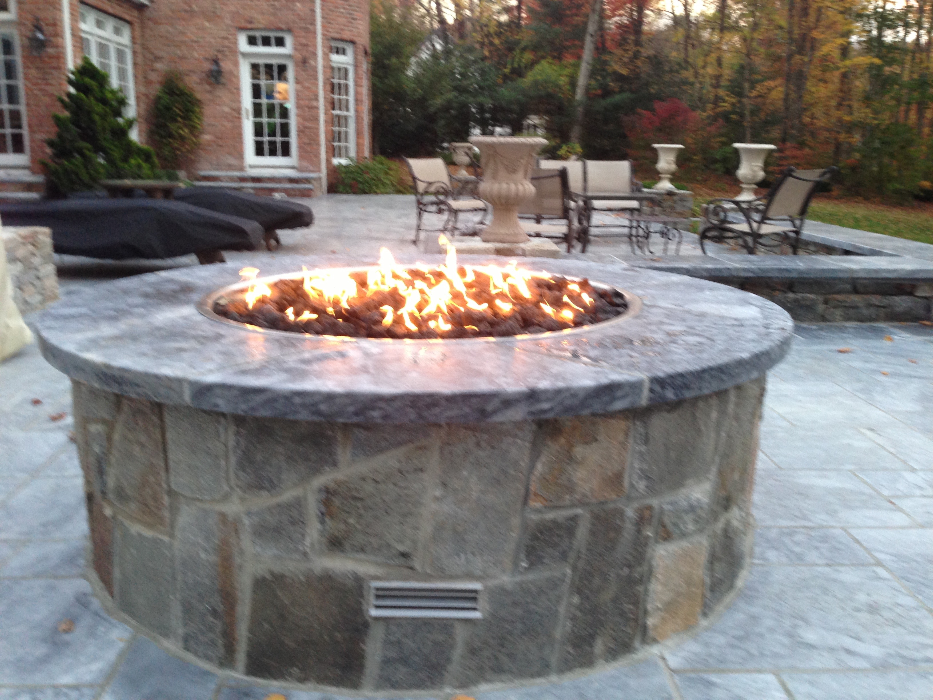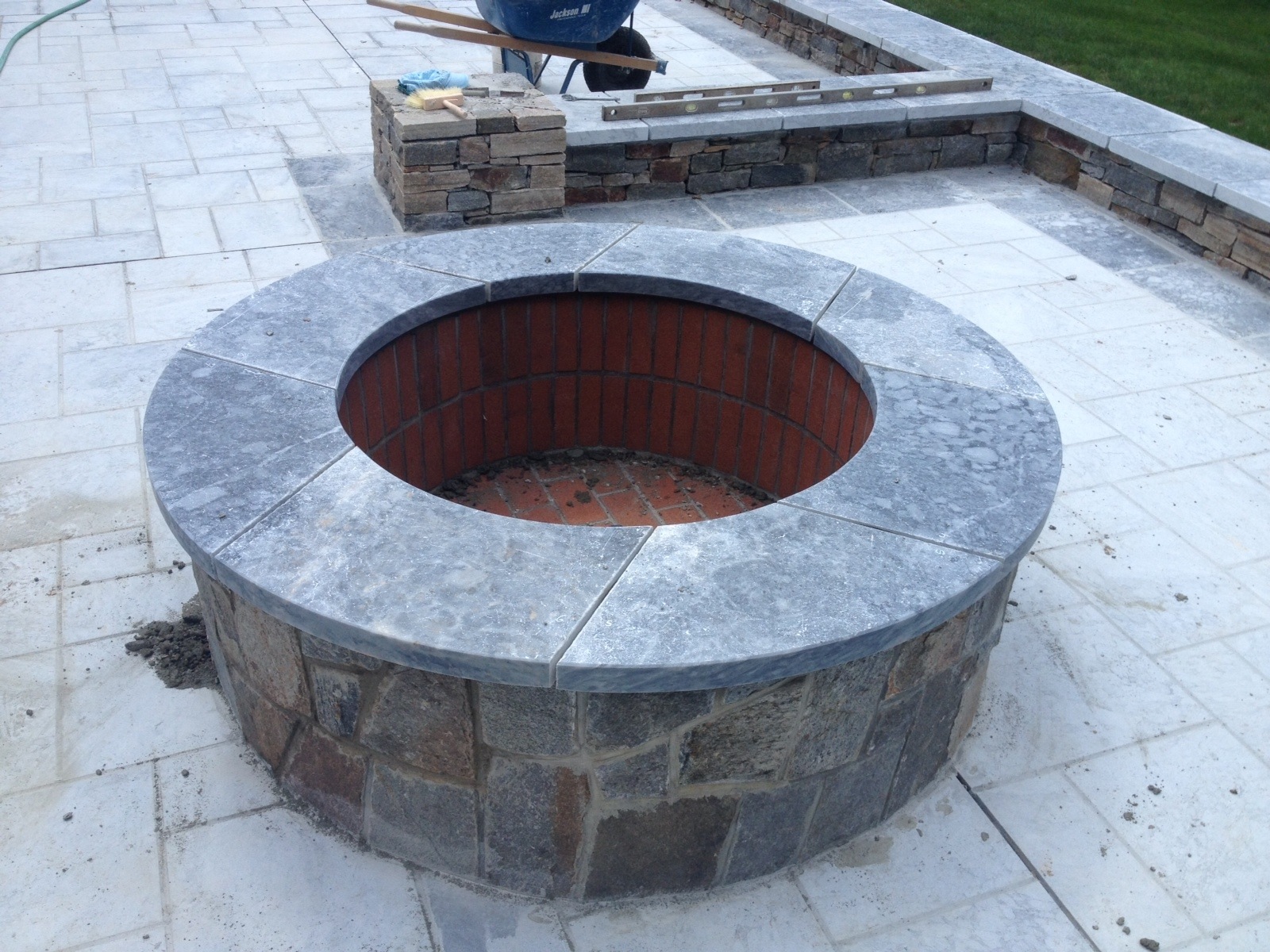 Here we show the building of this tremendous stone and marble gas fire pit adorned to match the rest of the stone outdoor kitchen and marble patio