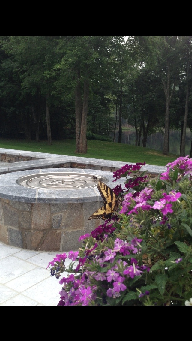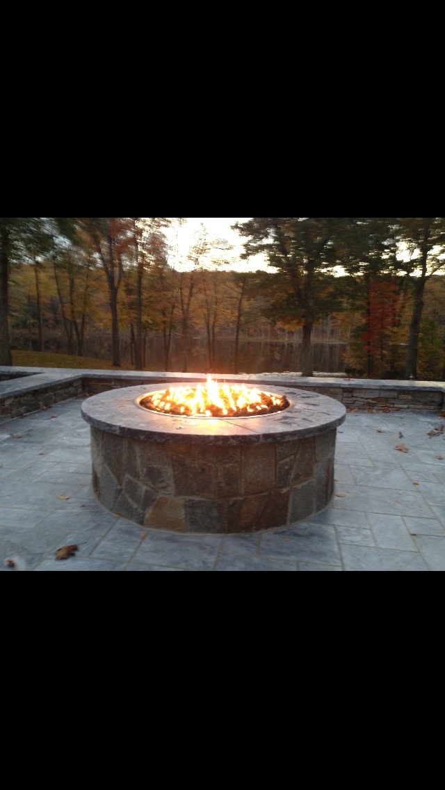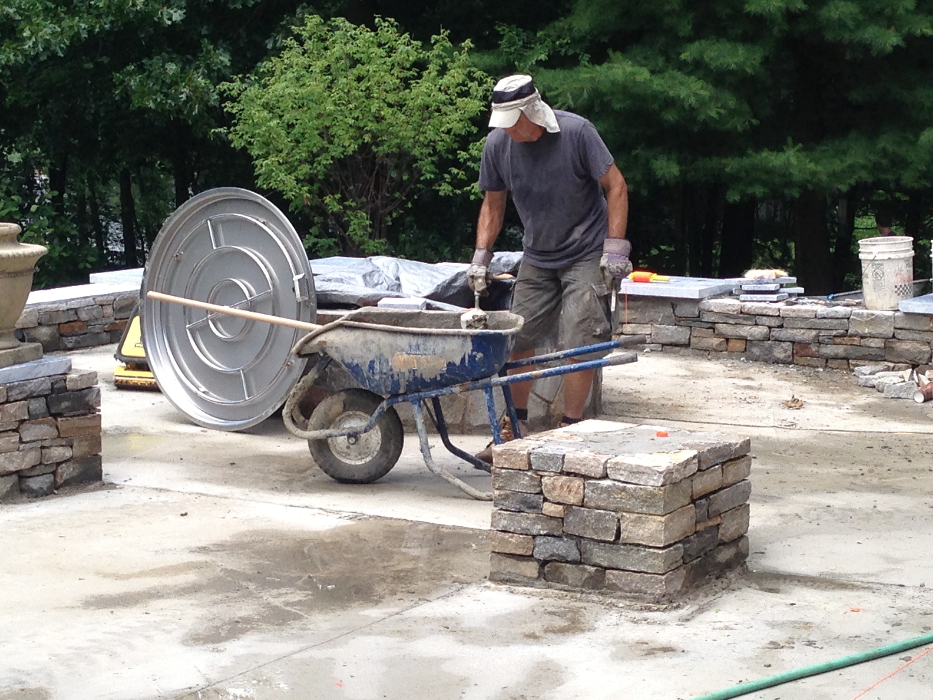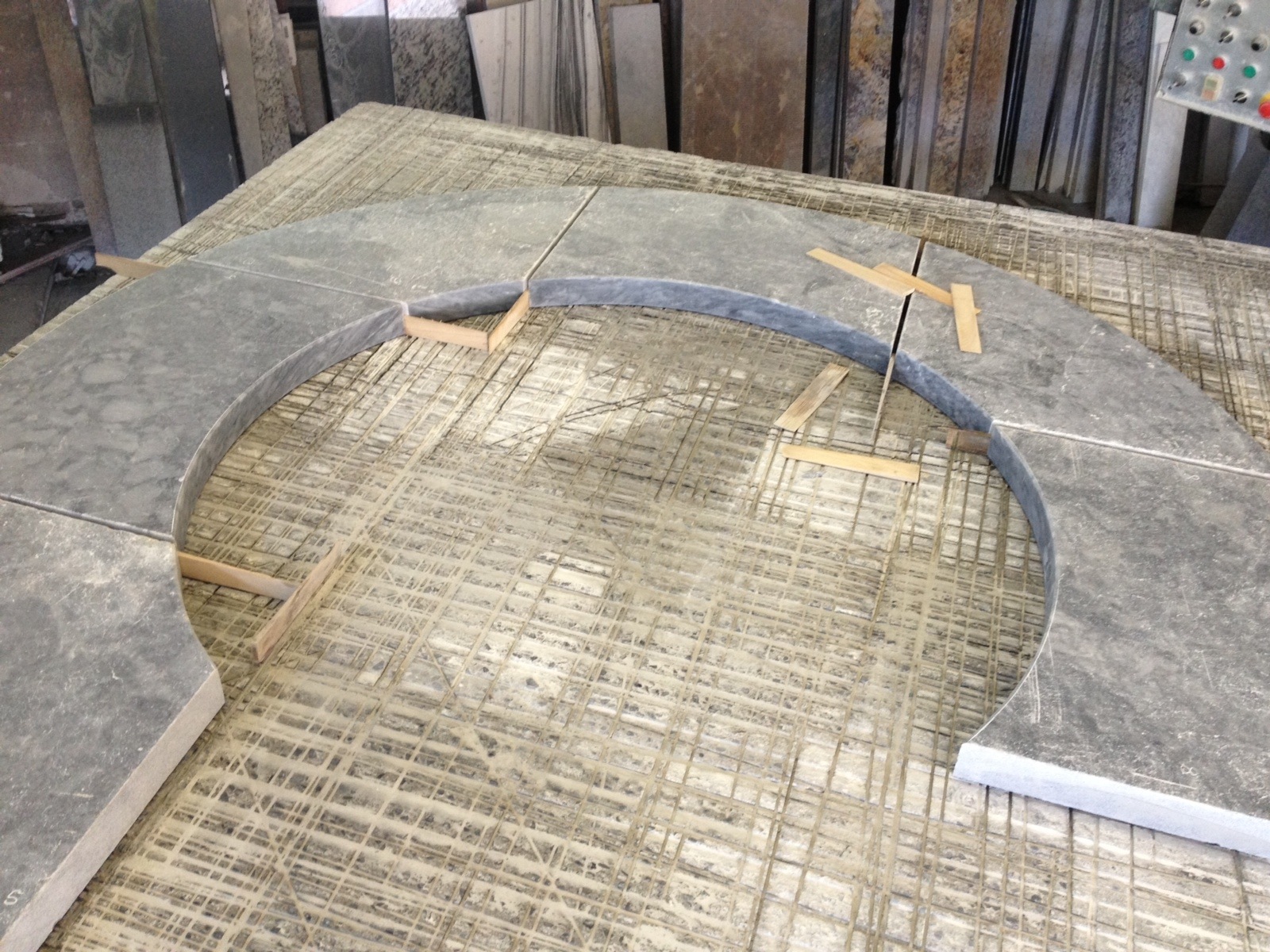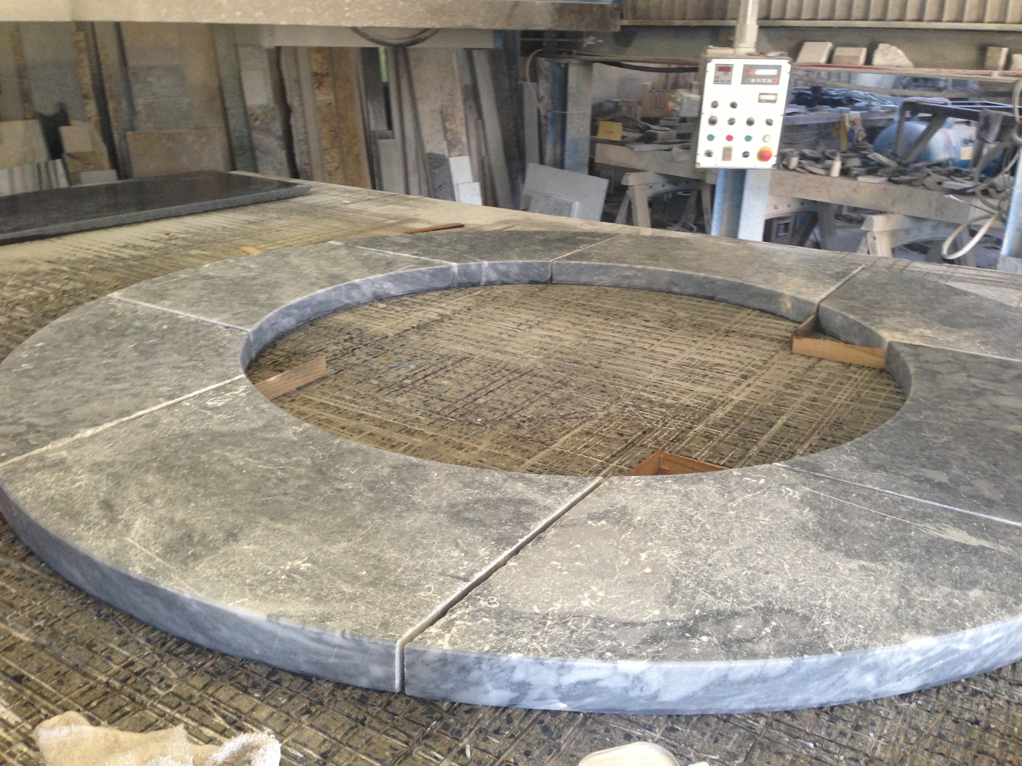 Here we show the building of this tremendous stone and marble gas fire pit adorned to match the rest of the stone outdoor kitchen and marble patio