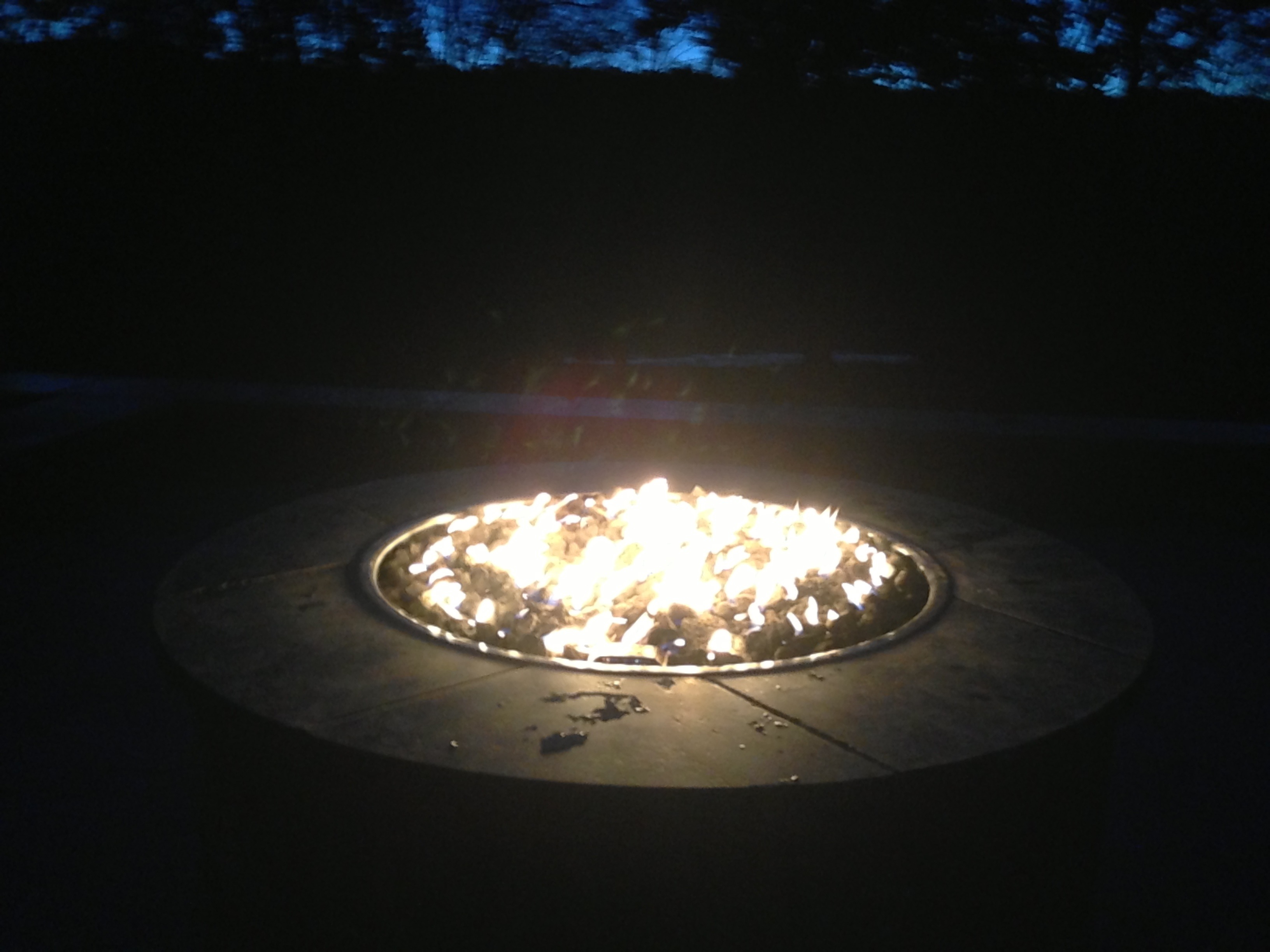 Fire pits surrounding by sitting walls create extra sitting space as well as a wind break defending the fire.